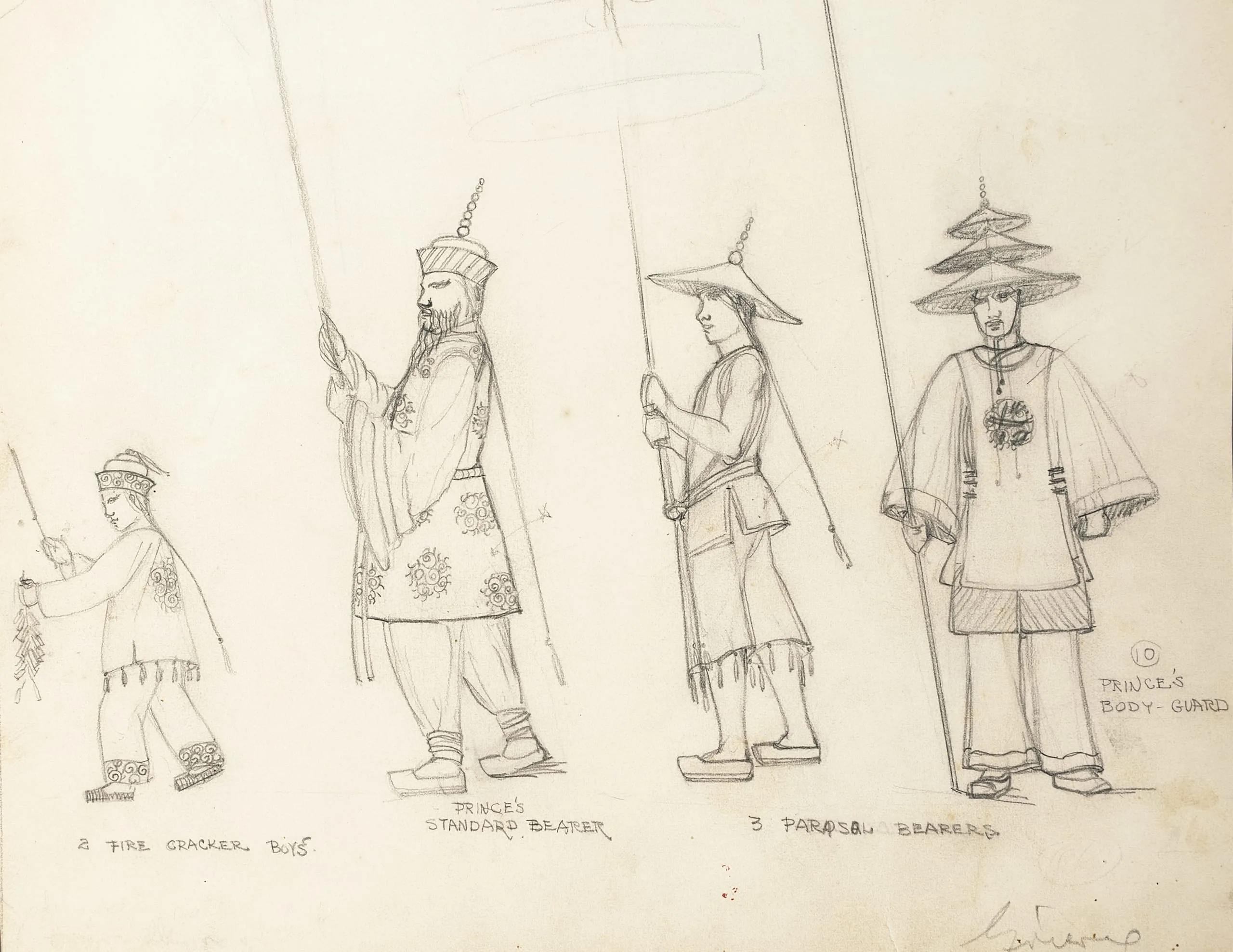 - Costume Sketch of Firecracker Boys, Prince's Standard Bearer, Parasol Bearers, and Prince's Body Guard for the United Artists Production of 'The Thief of Baghdad'