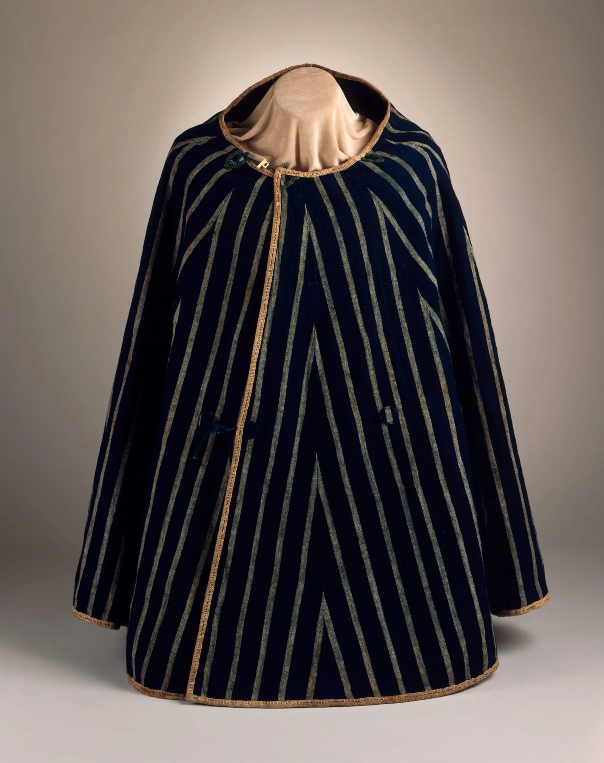 - Cotton plain weave with cotton plain weave trim, cotton plain weave cord, braided, and bone or horn toggles