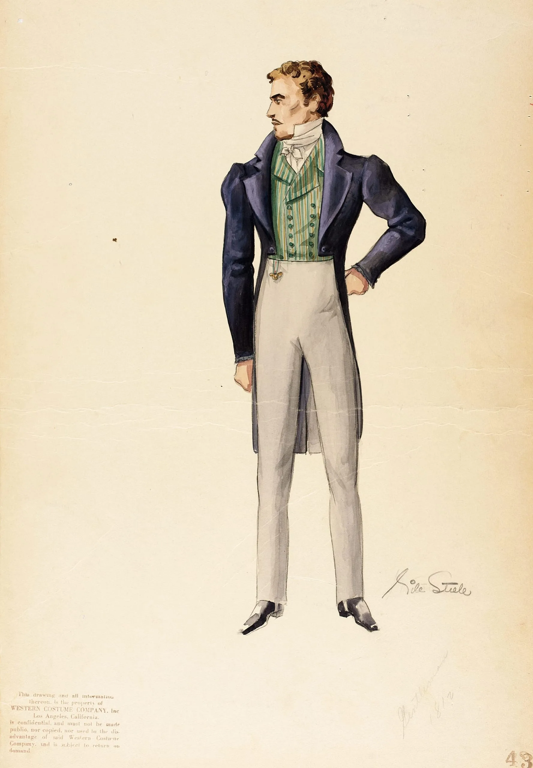 - Costume Sketch of Franchot Tone as Dr. Valentine Brown in the RKO Radio Pictures Inc. Production, 'Quality Street'