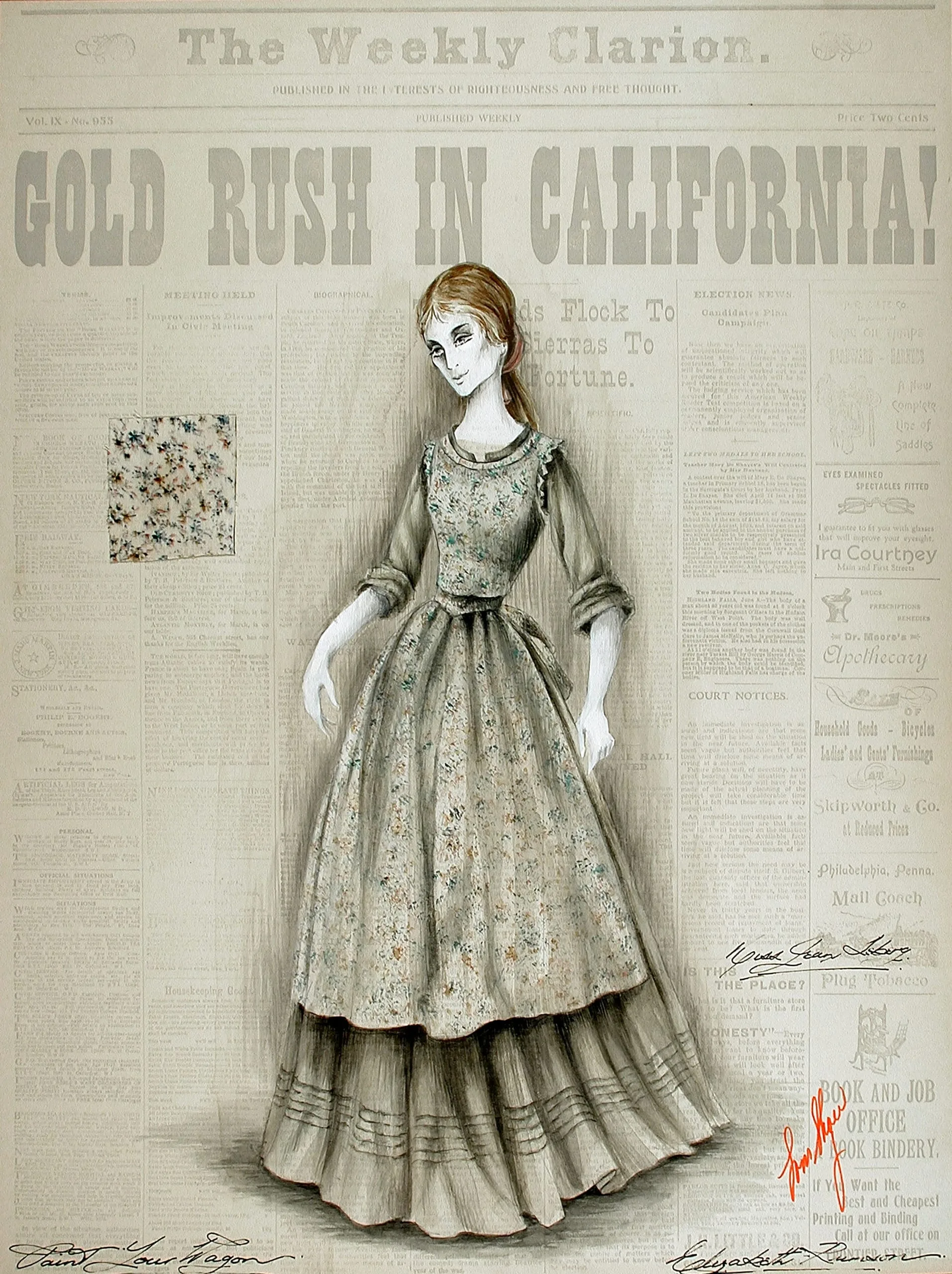 - Costume Sketch of Jean Seberg as Elizabeth Rumston in the Paramount Pictures Production, 'Paint Your Wagon'