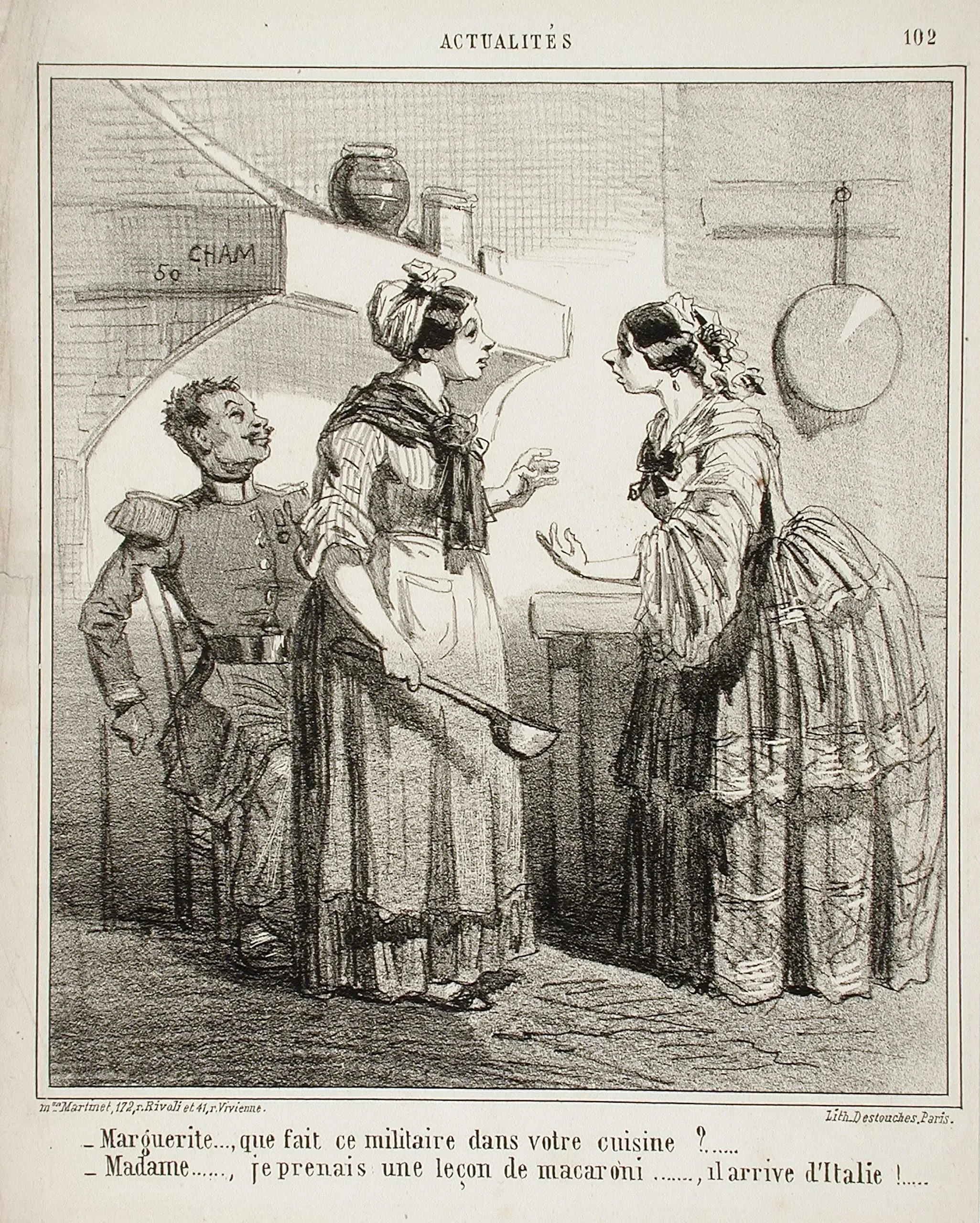 - Marguerite, que fait ce militaire dans votre cuisine? Madame, je prenais une leçon de macaroni, Il arrive d'Italie!