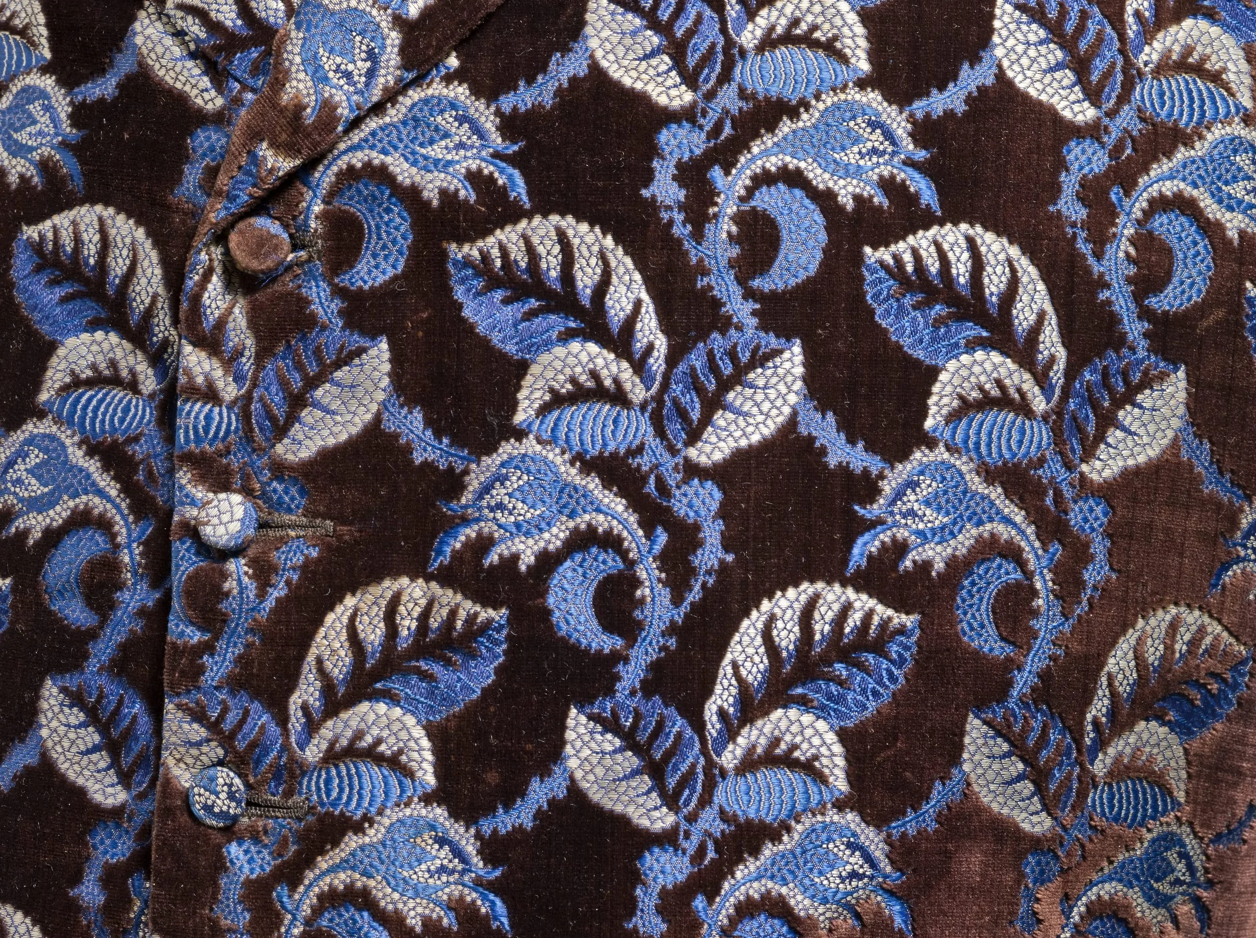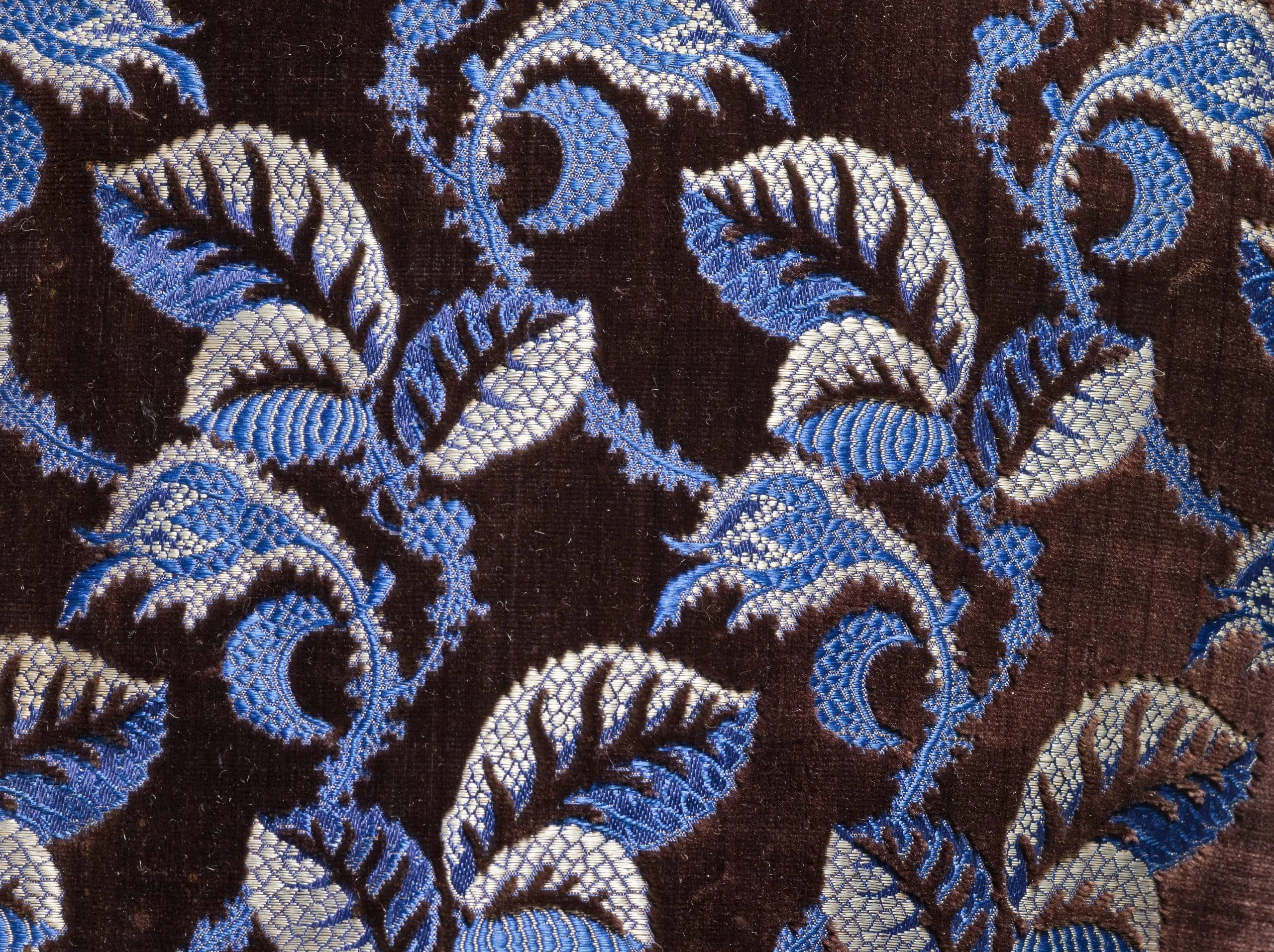 - Silk cut and voided velvet on plain-weave foundation with supplementary weft-float patterning