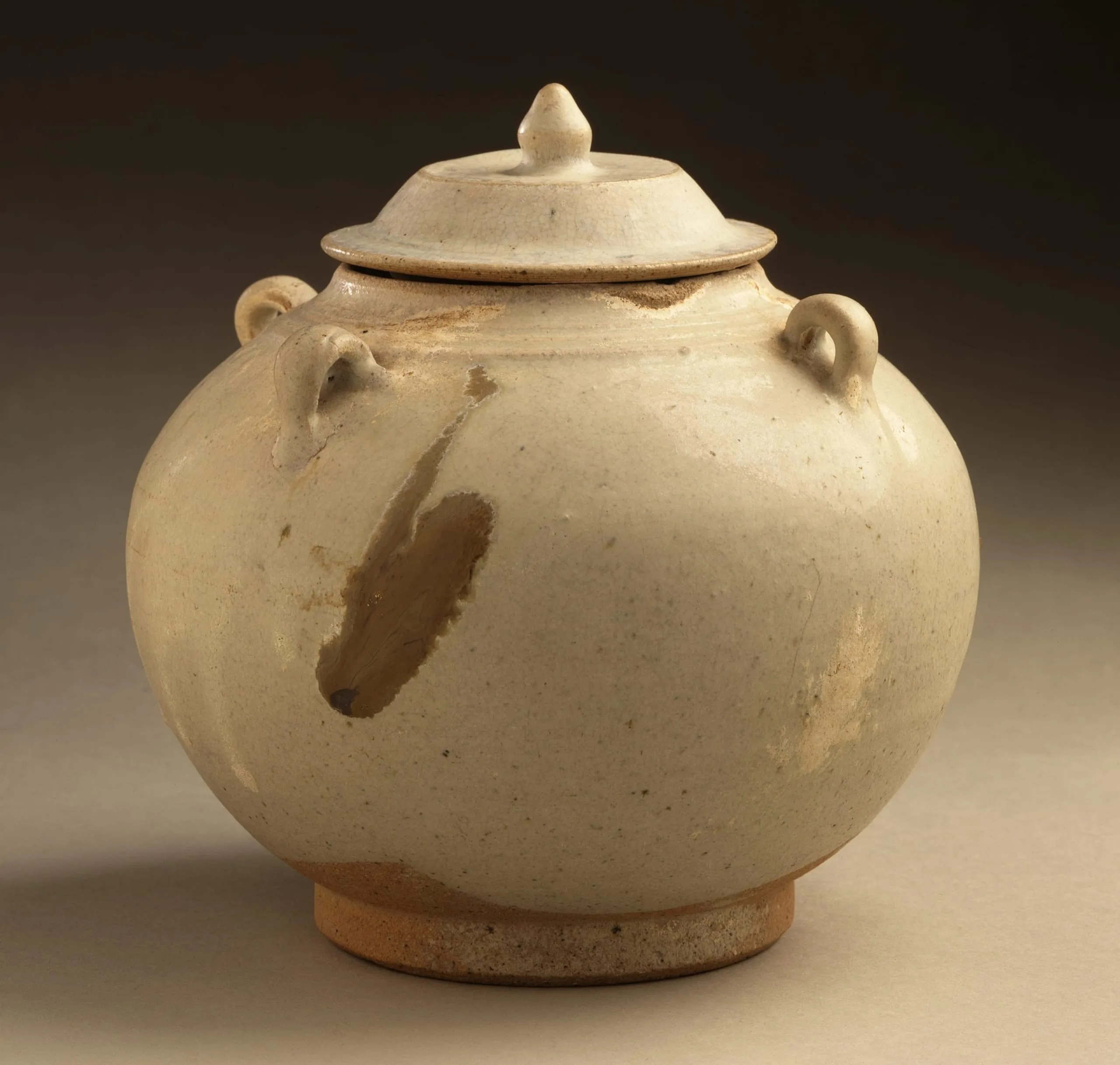 - Covered Globular Jar with Four Shoulder Lugs