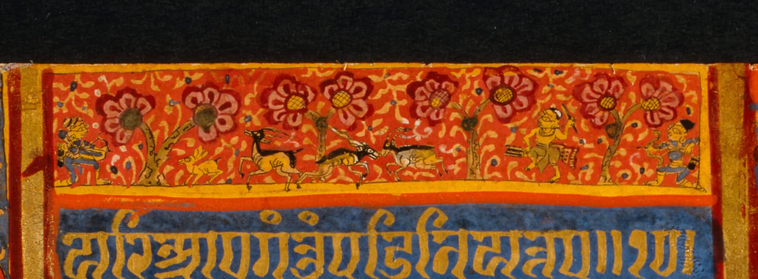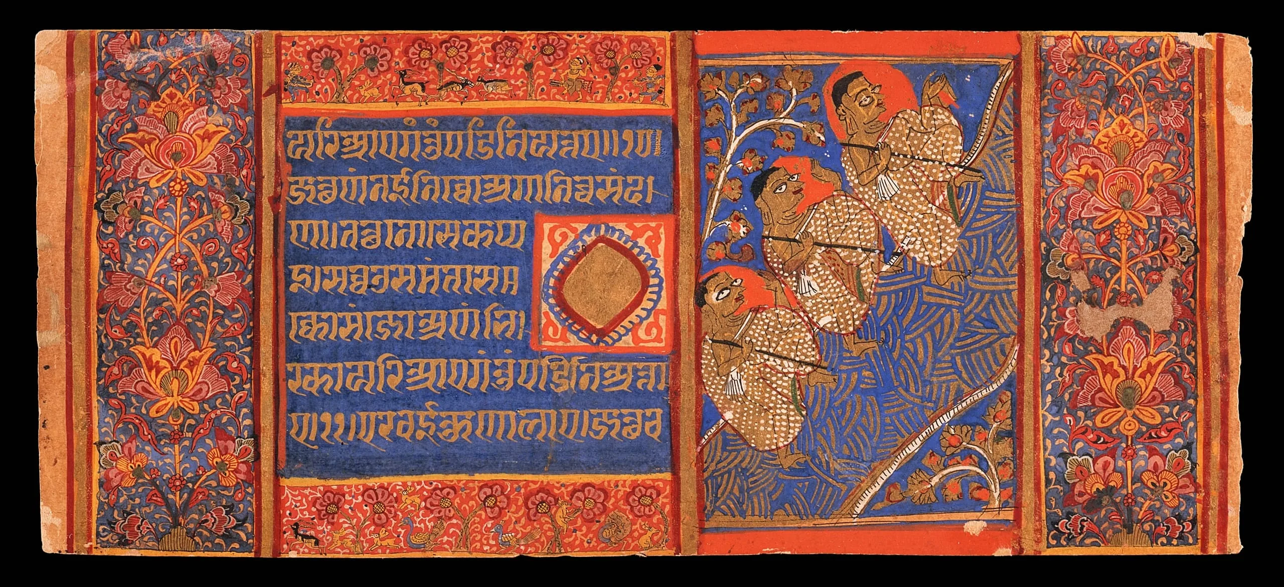 - Three Monks Fording a River (recto) and Two Raginis (verso), Folio from the “Devasano Pado” Kalpasutra (Book of Sacred Precepts) and Kalakacharyakatha (Story of the Teacher Kalaka)