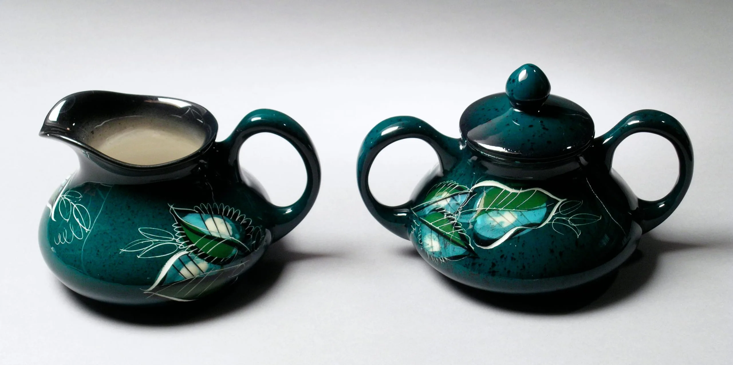 - Creamer: 3 3/4 x 5 x 6 1/4 in. (9.5 x 12.7 x 15.9 cm); Sugar with lid: 6 1/2 x 9 1/2 x 7 3/4 in. (16.5 x 24.1 x 19.6 cm)