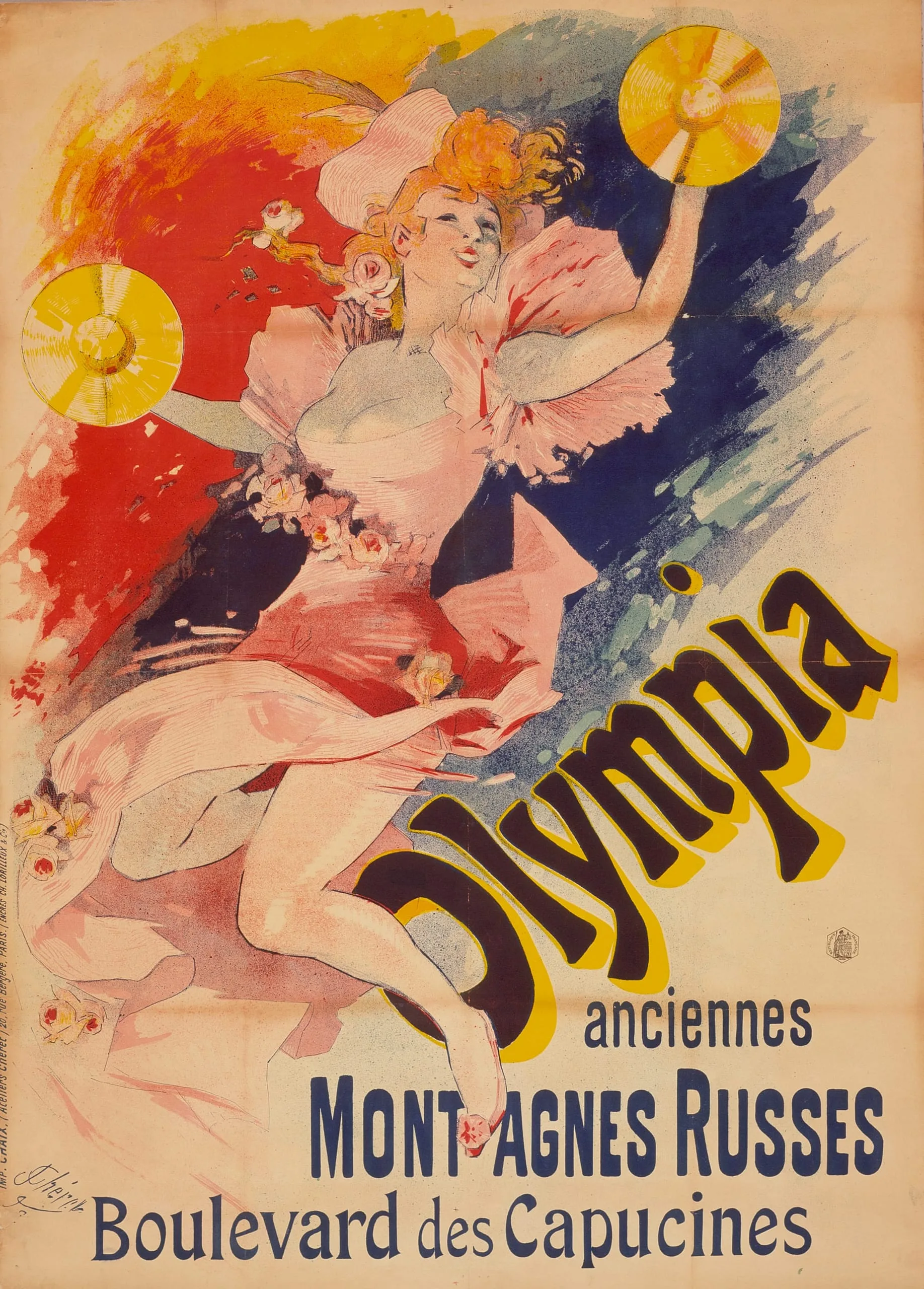 - Lithograph in pink, vermilion, yellow, Prussian blue, and gray green