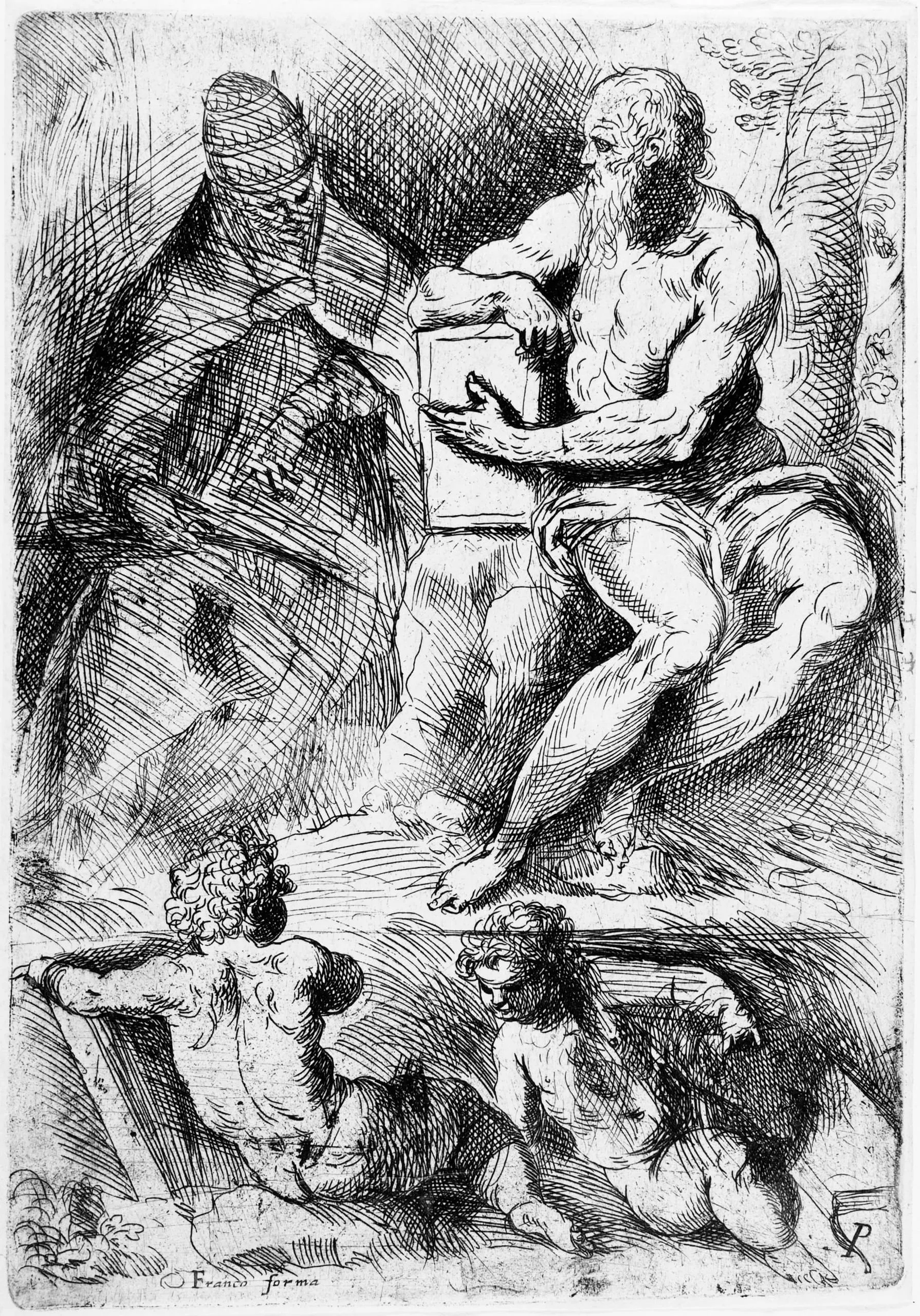 - St. Jerome, Pope Damasus, and Two Putti