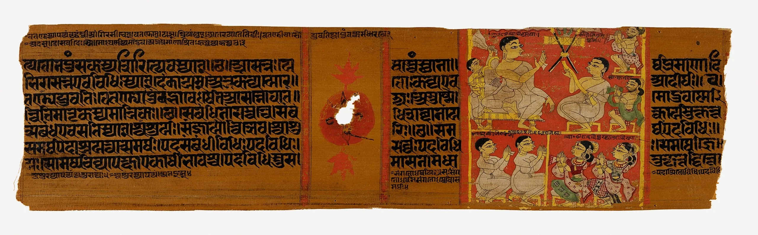 - Ink and opaque watercolor on palm leaf