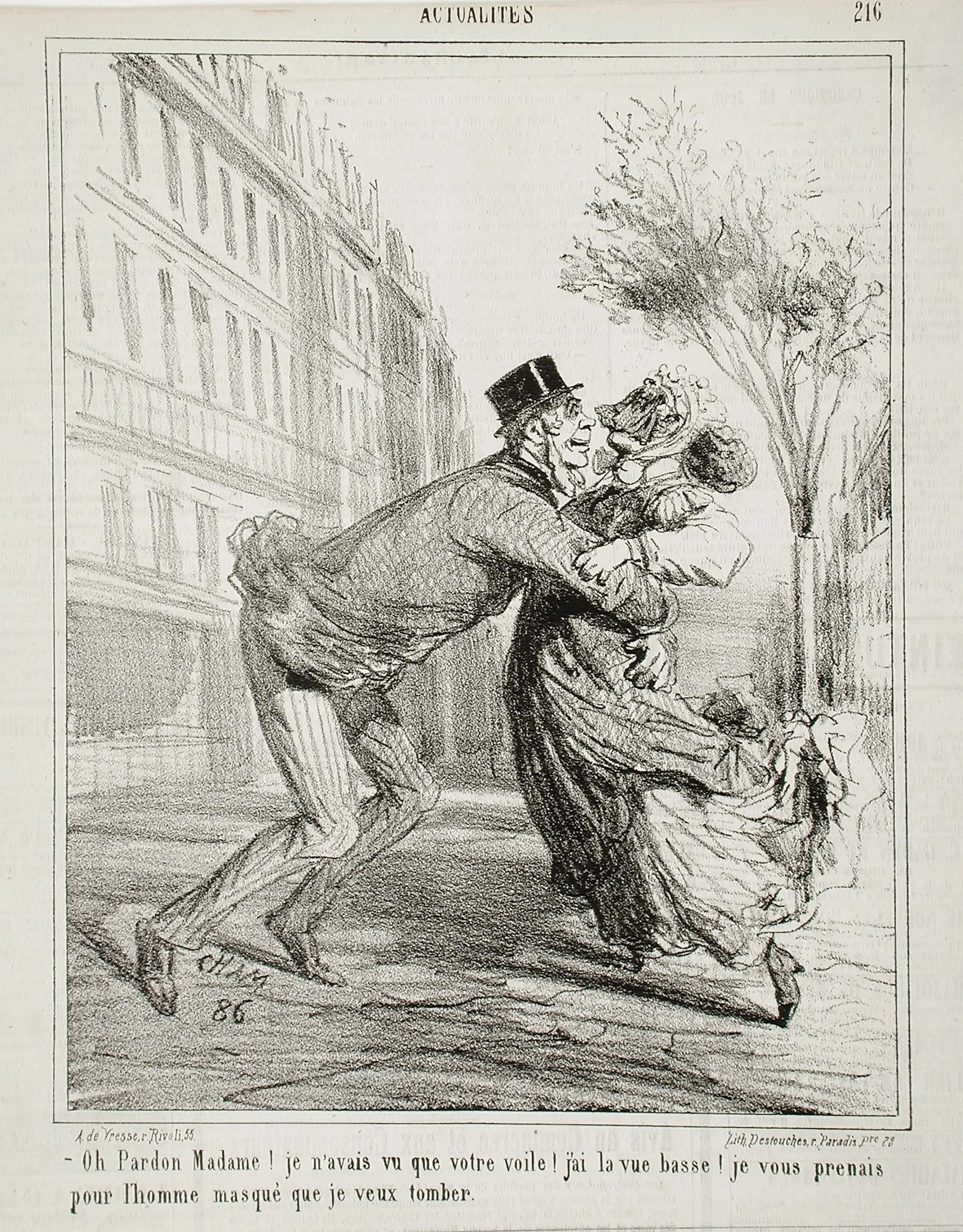 - Oh pardon madame! Je n'avais vu que votre voile! J'ai la vue basse! Je vous prenais pour l'homme masqué que je veux tomber.