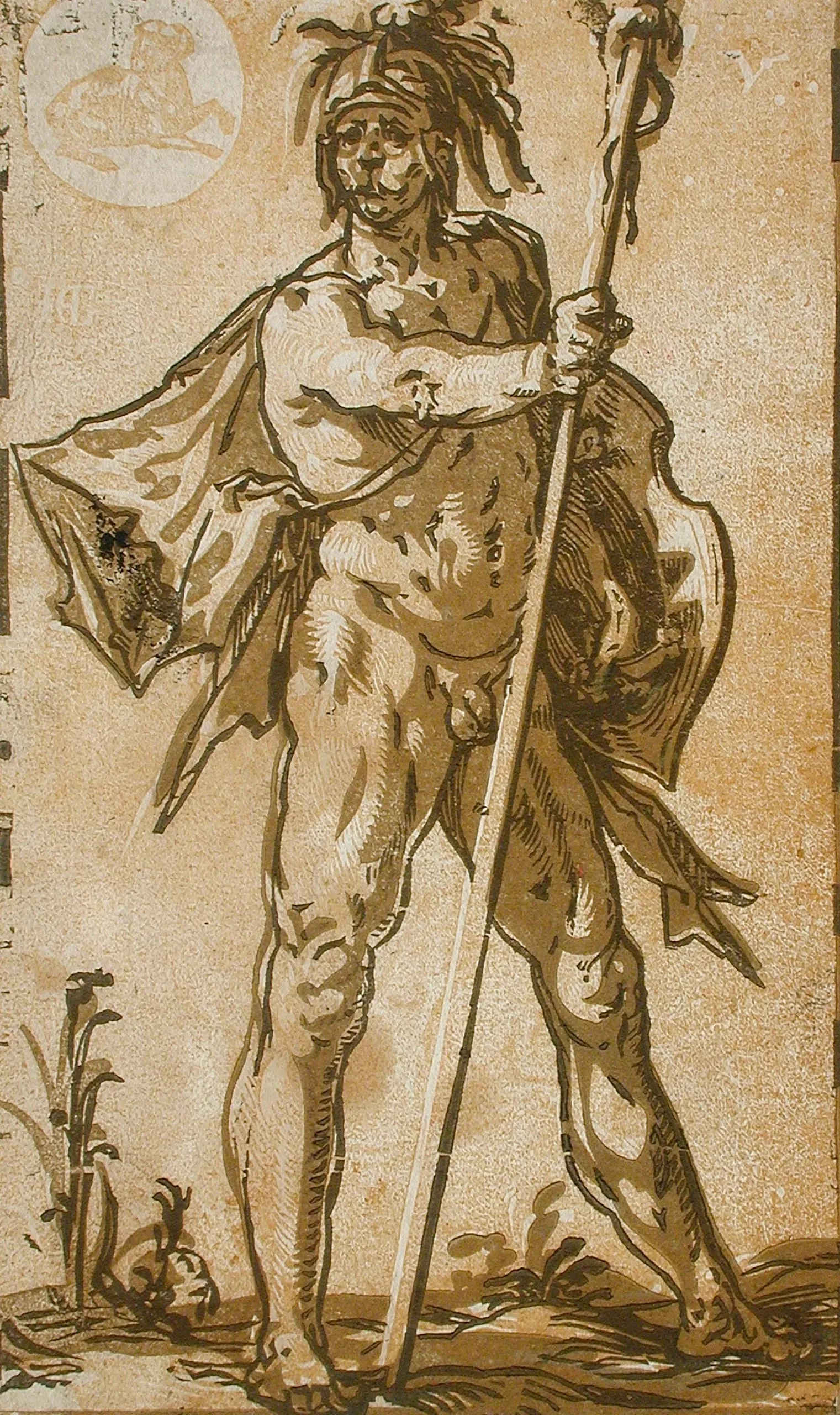 - Chiaroscuro woodcut from three blocks (in ocher, brown, and black)