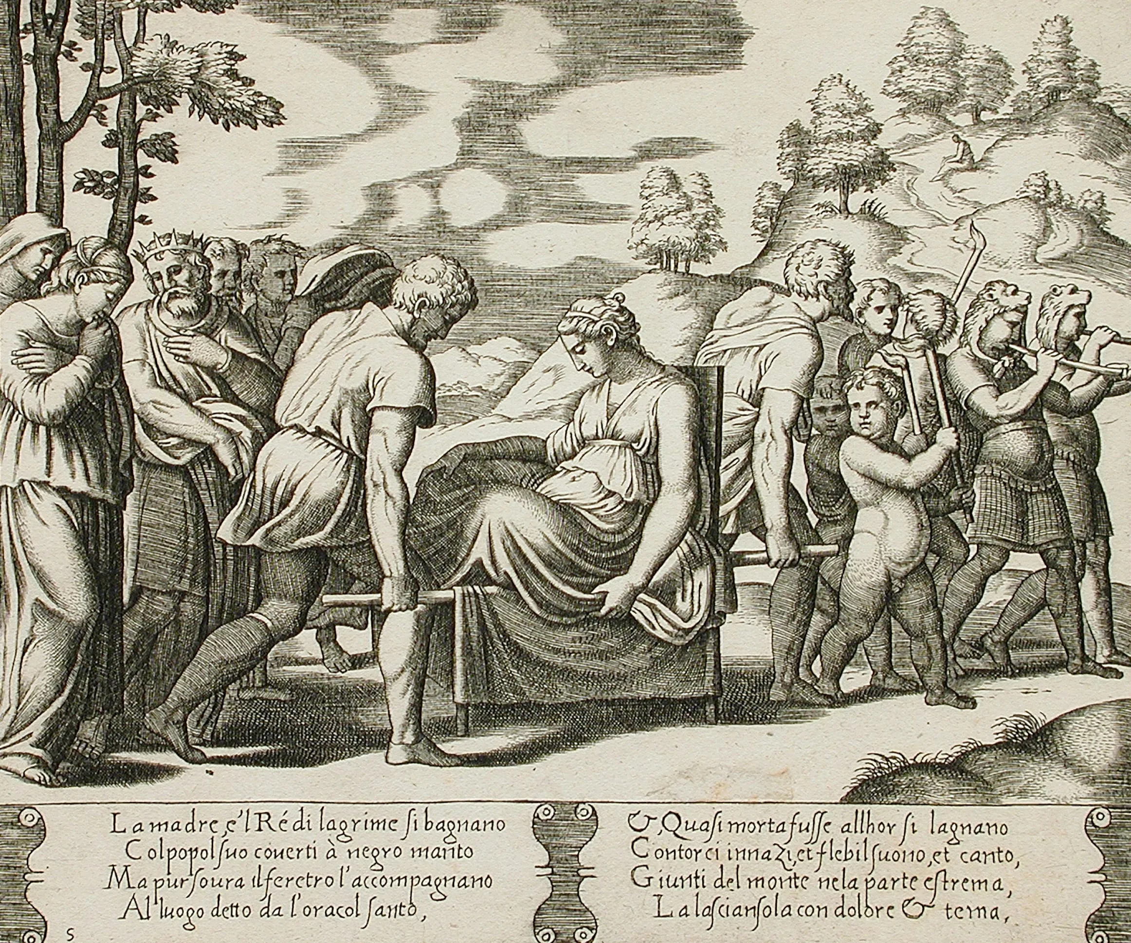 - Psyche carried on a litter being taken to a mountain