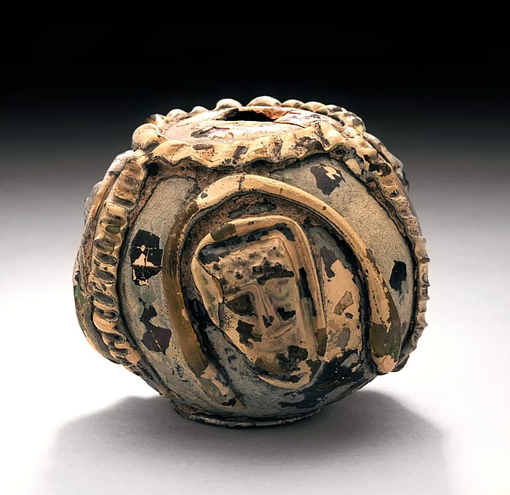 - Glass, free-blown, with applied decoration
