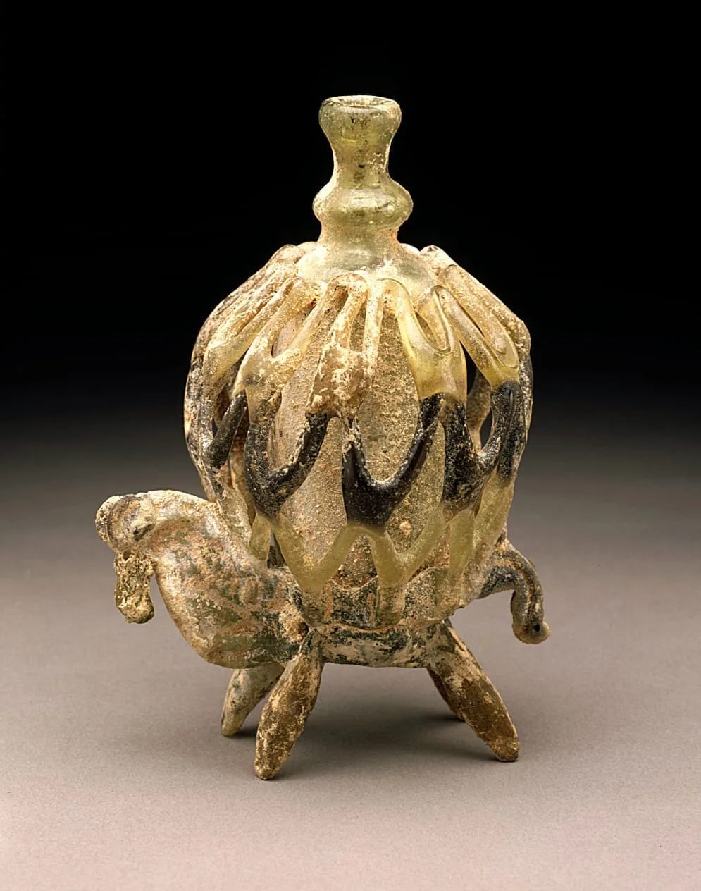 - Glass, free-blown, tooled with applied decoration