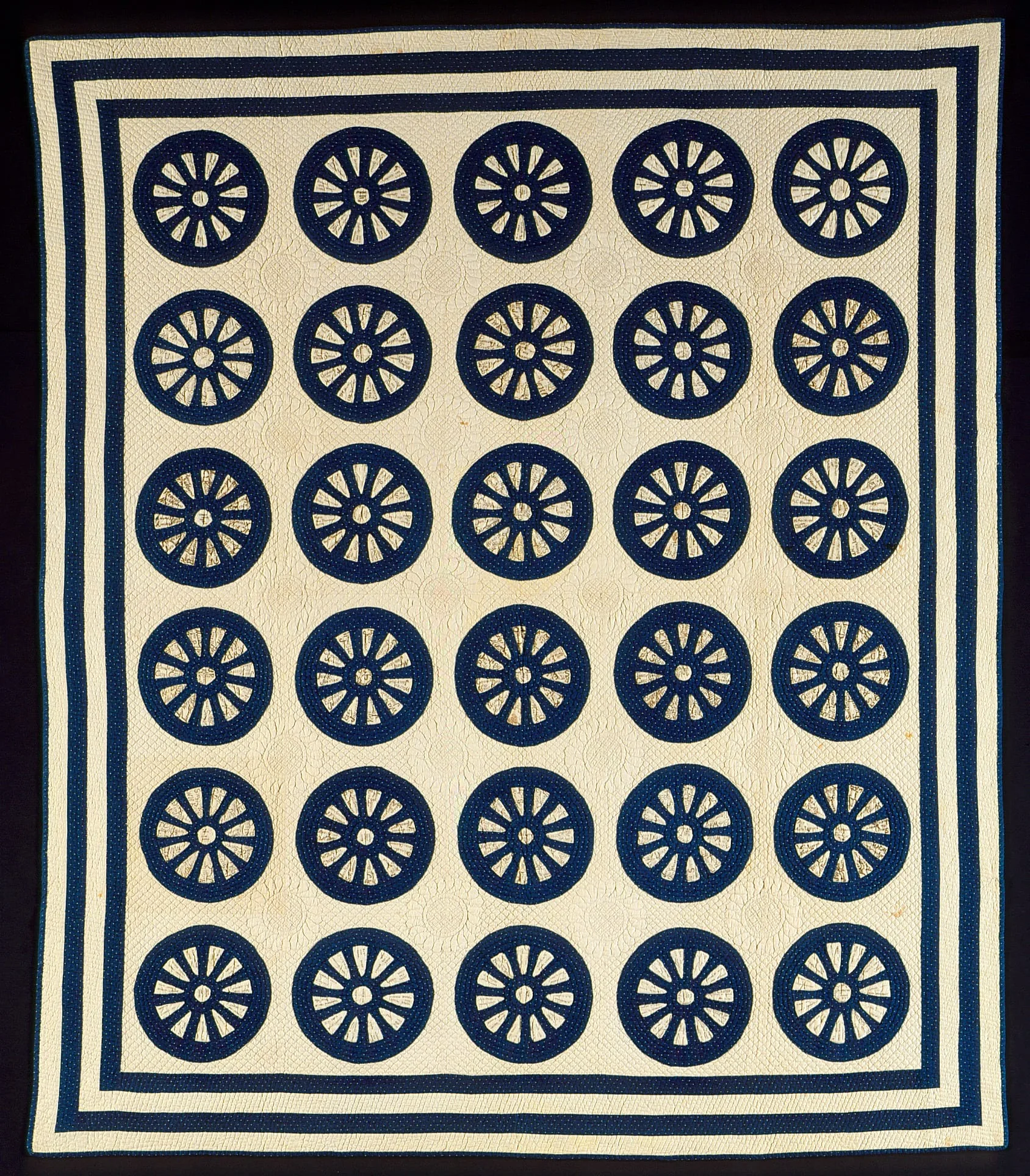 - Appliquéd, reverse appliquéd, pieced, and quilted cotton, with multiple inked signatures