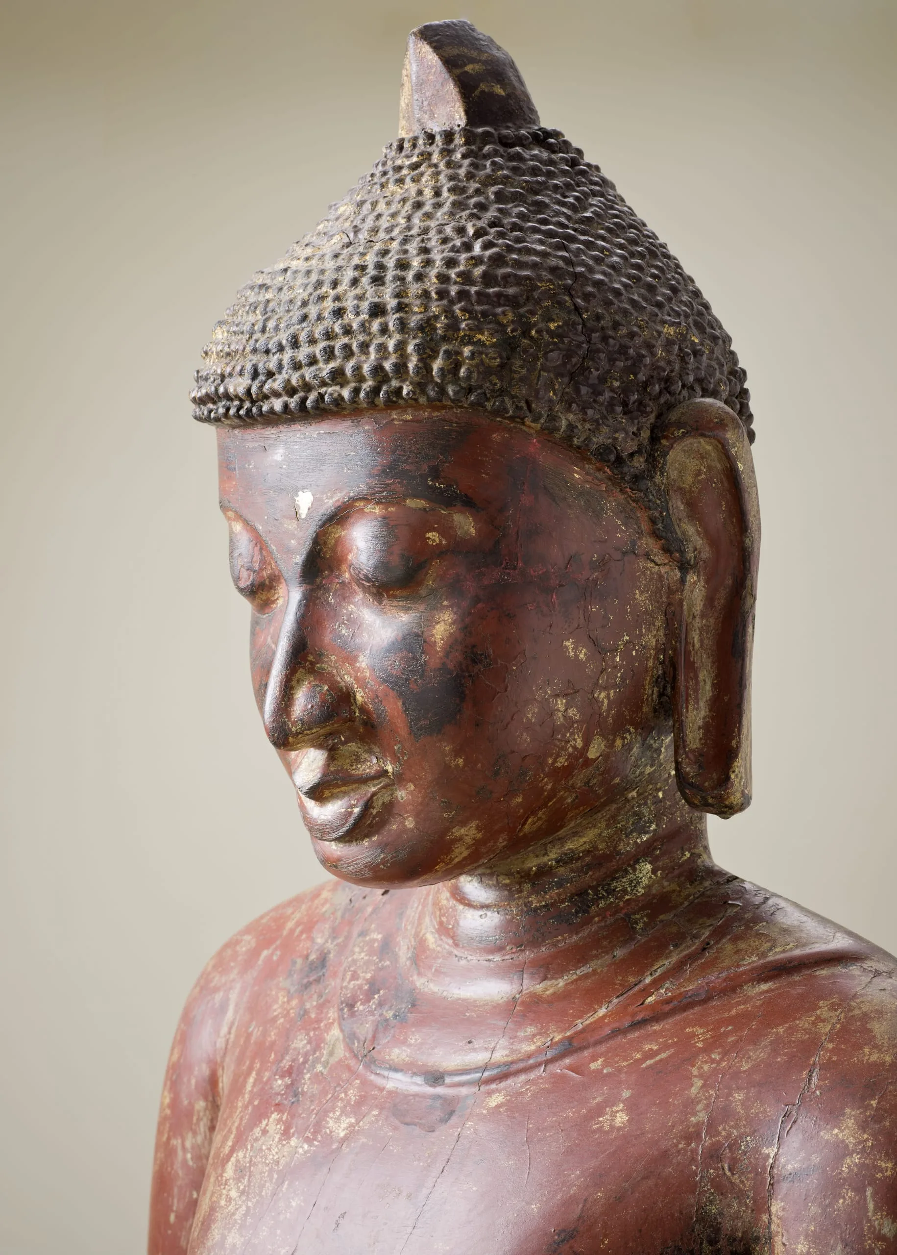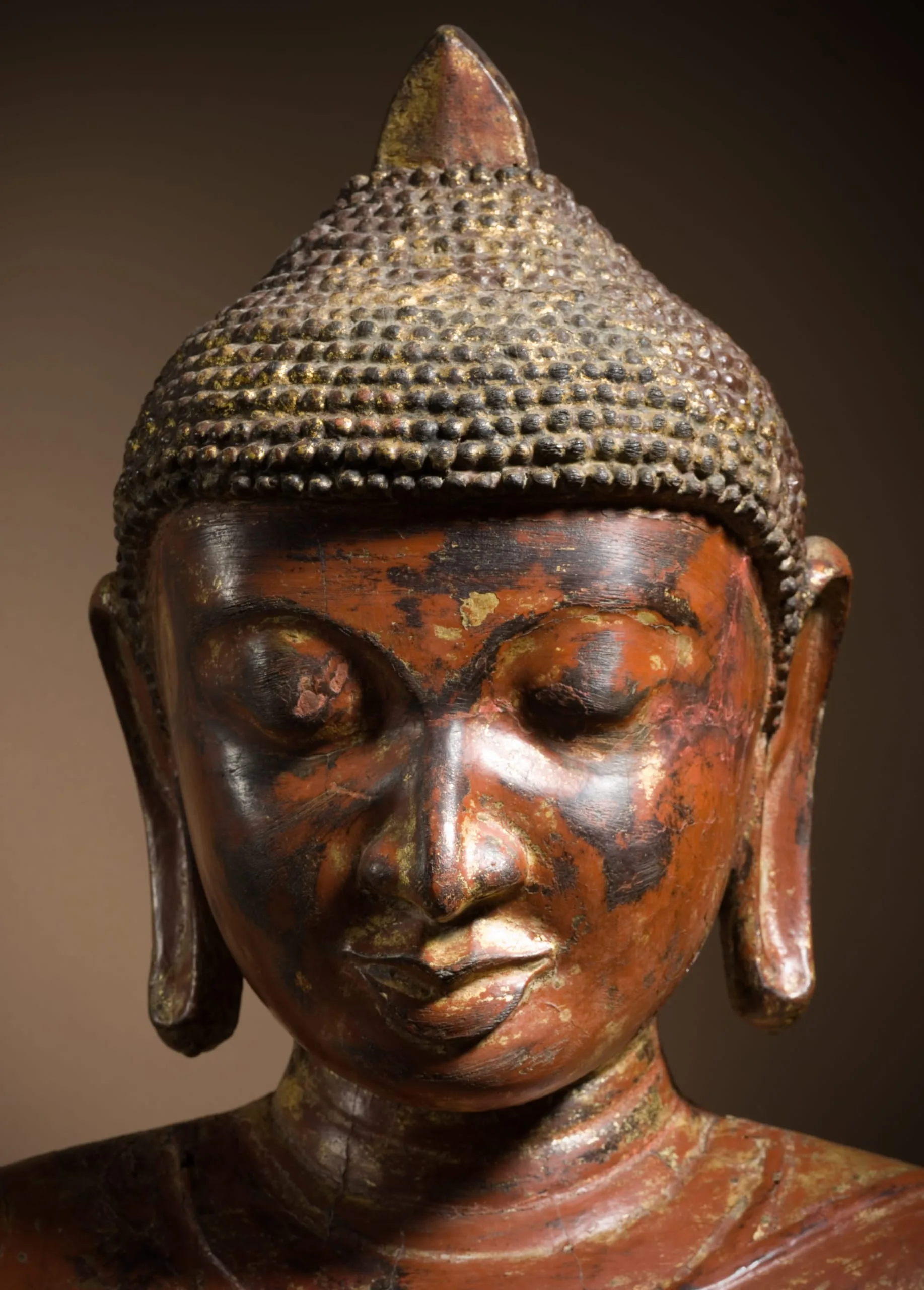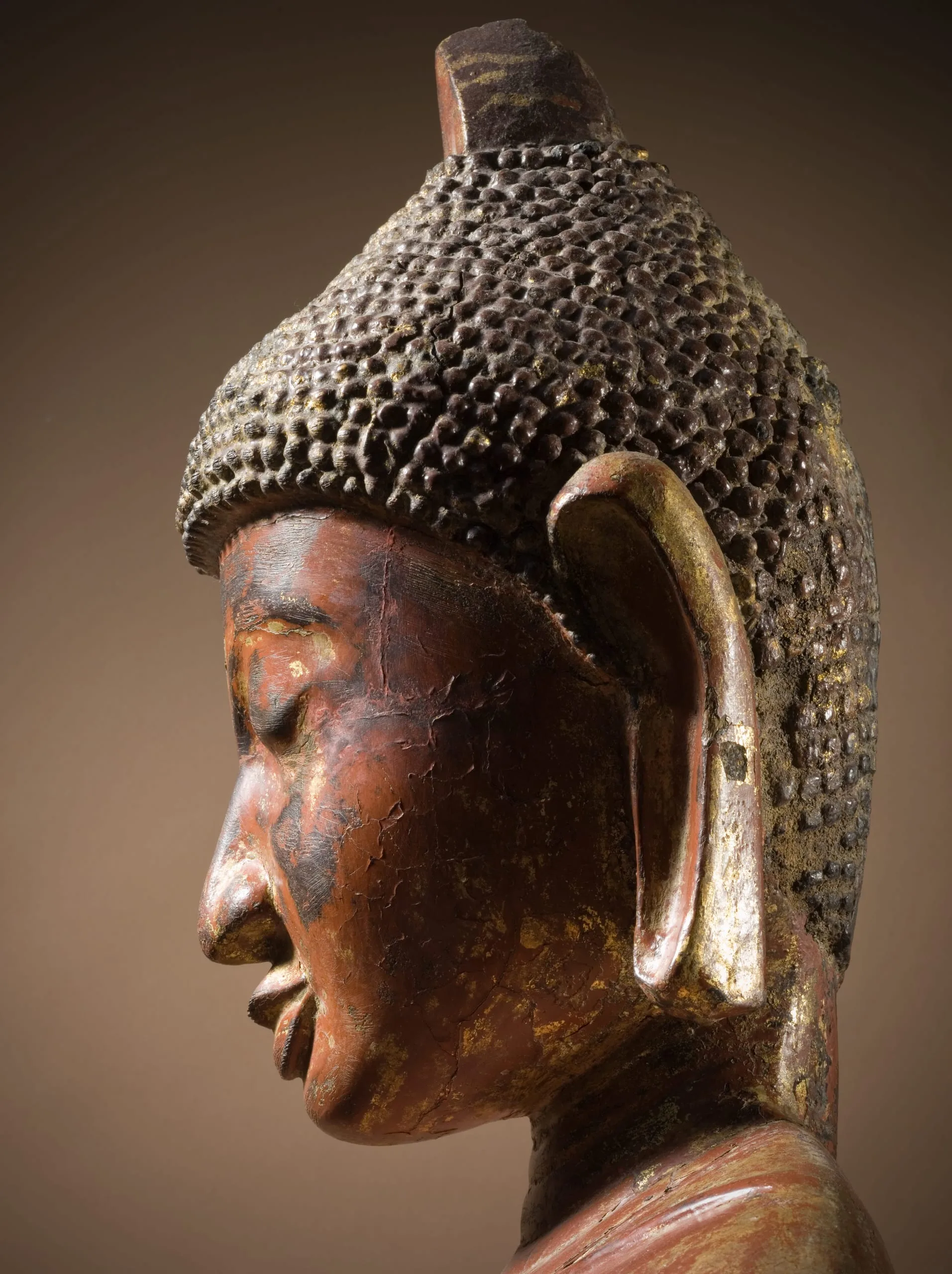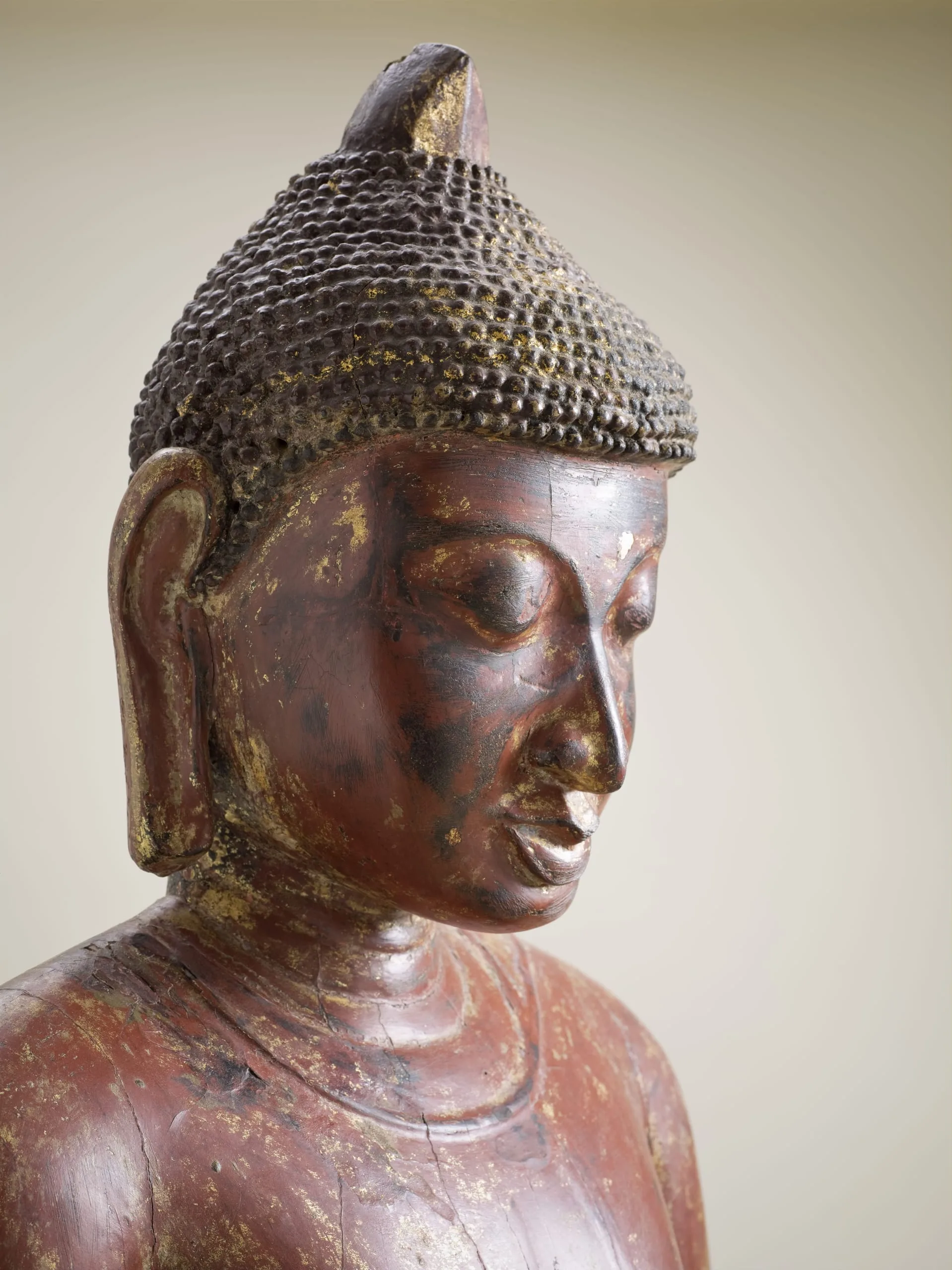 - Wood, possibly with lacquer, and traces of gilding