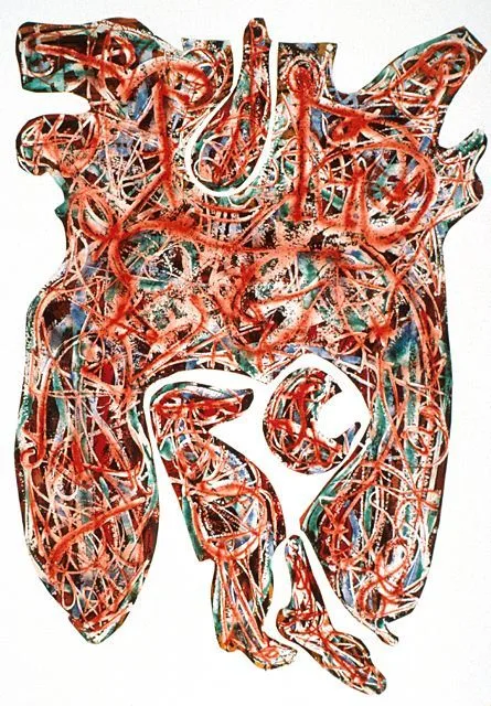 - Wax, watercolor, gouache, and ink on paper