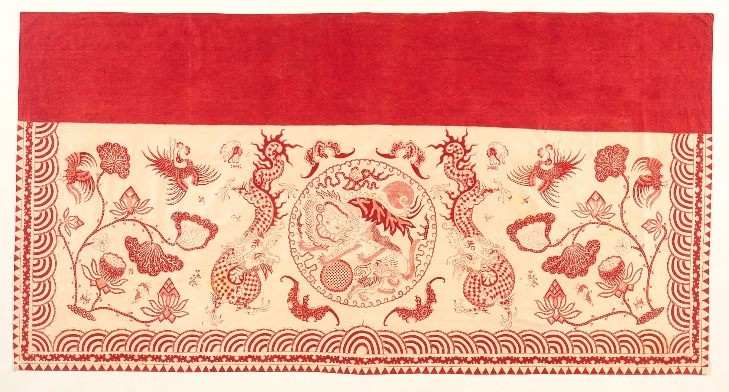 - Hand-drawn wax resist (batik) on machine-woven cotton, synthetic dyes