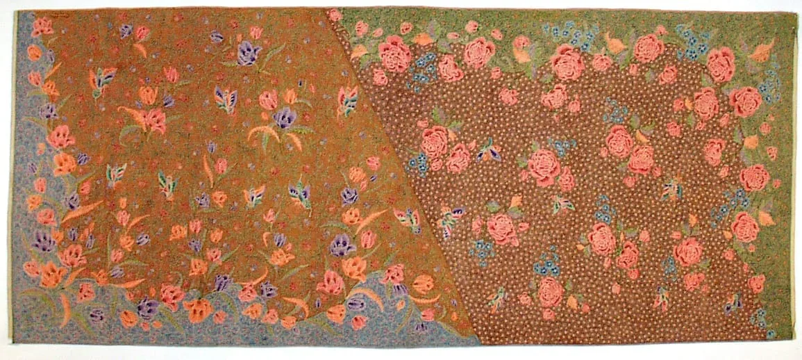 - Hand-drawn wax resist on cotton
