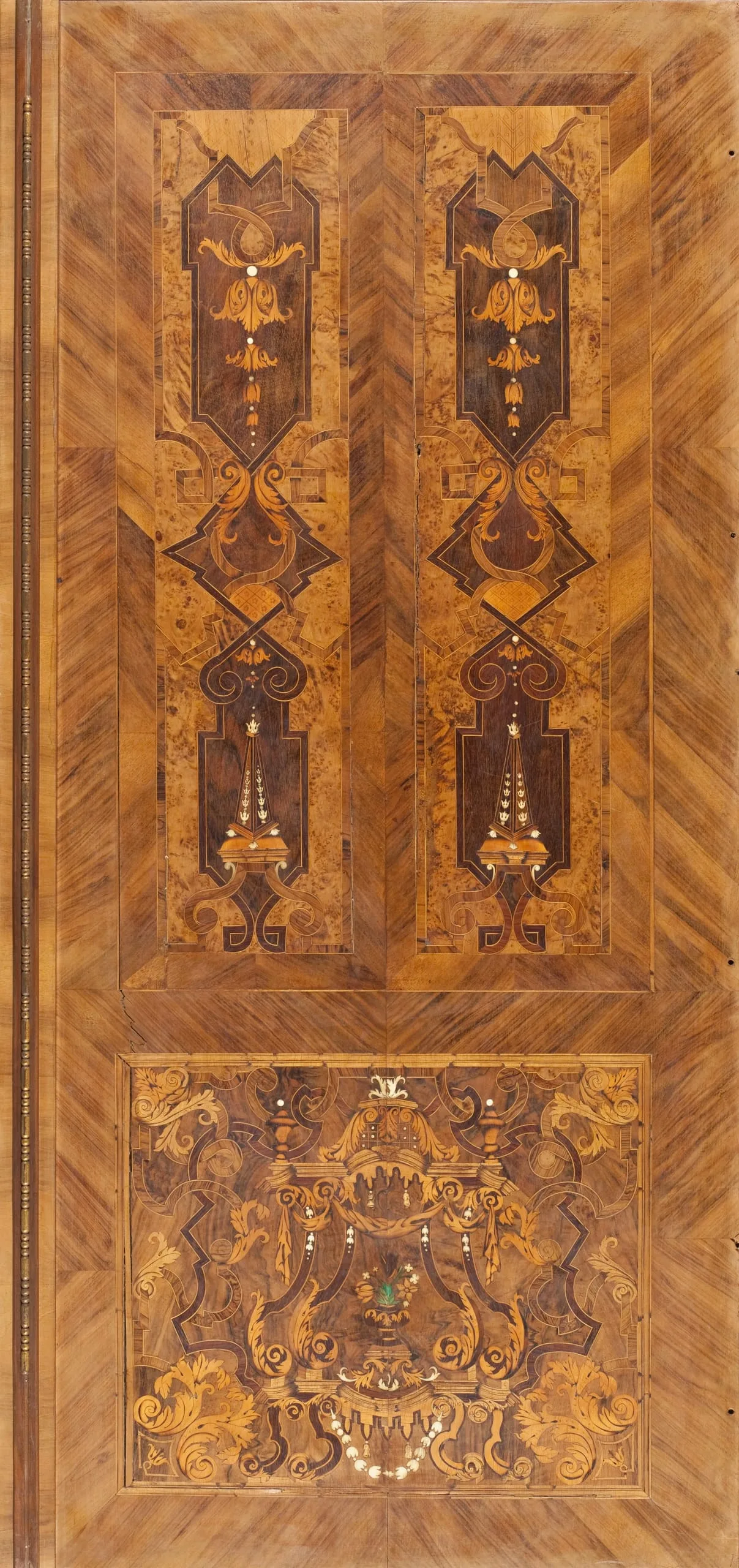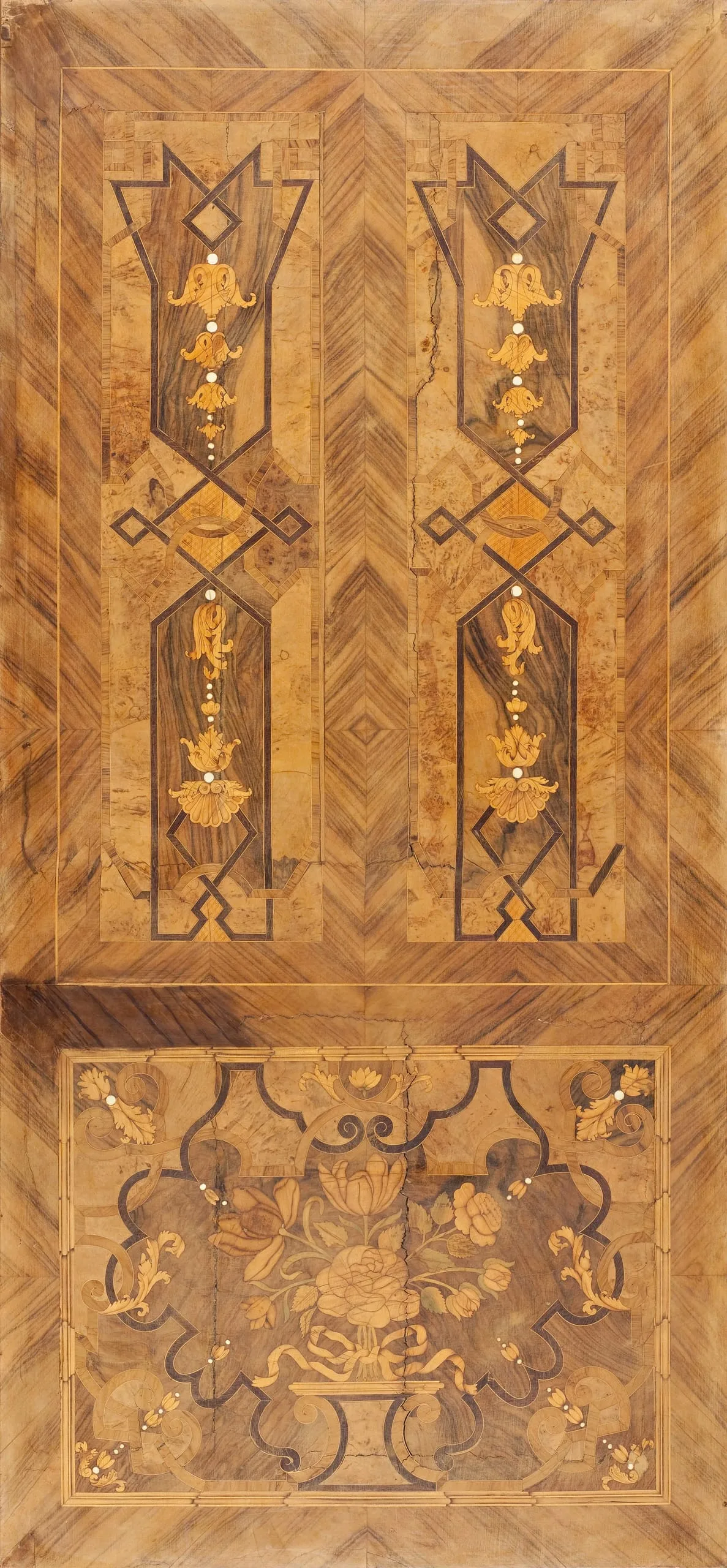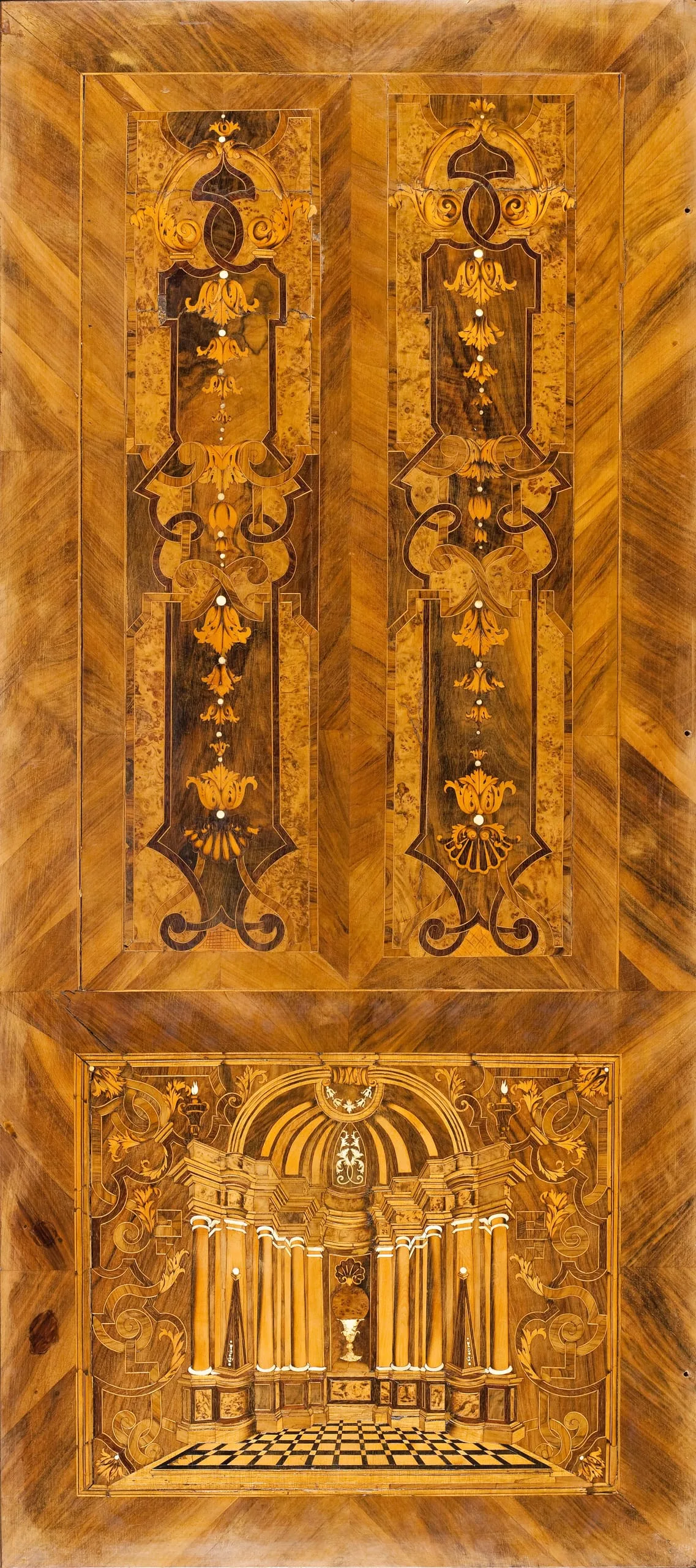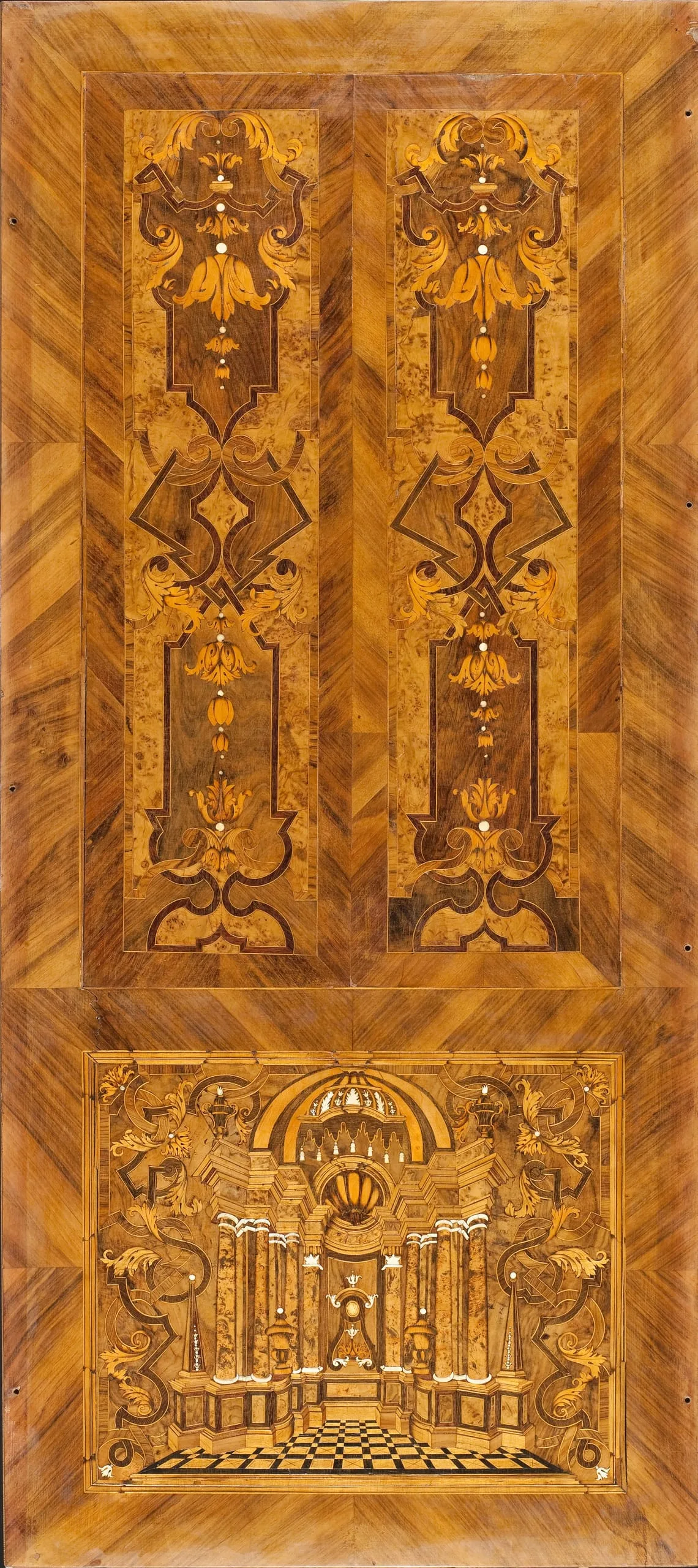 - Oak, walnut veneer, boxwood, rosewood, ebony, majole, ivory, horn