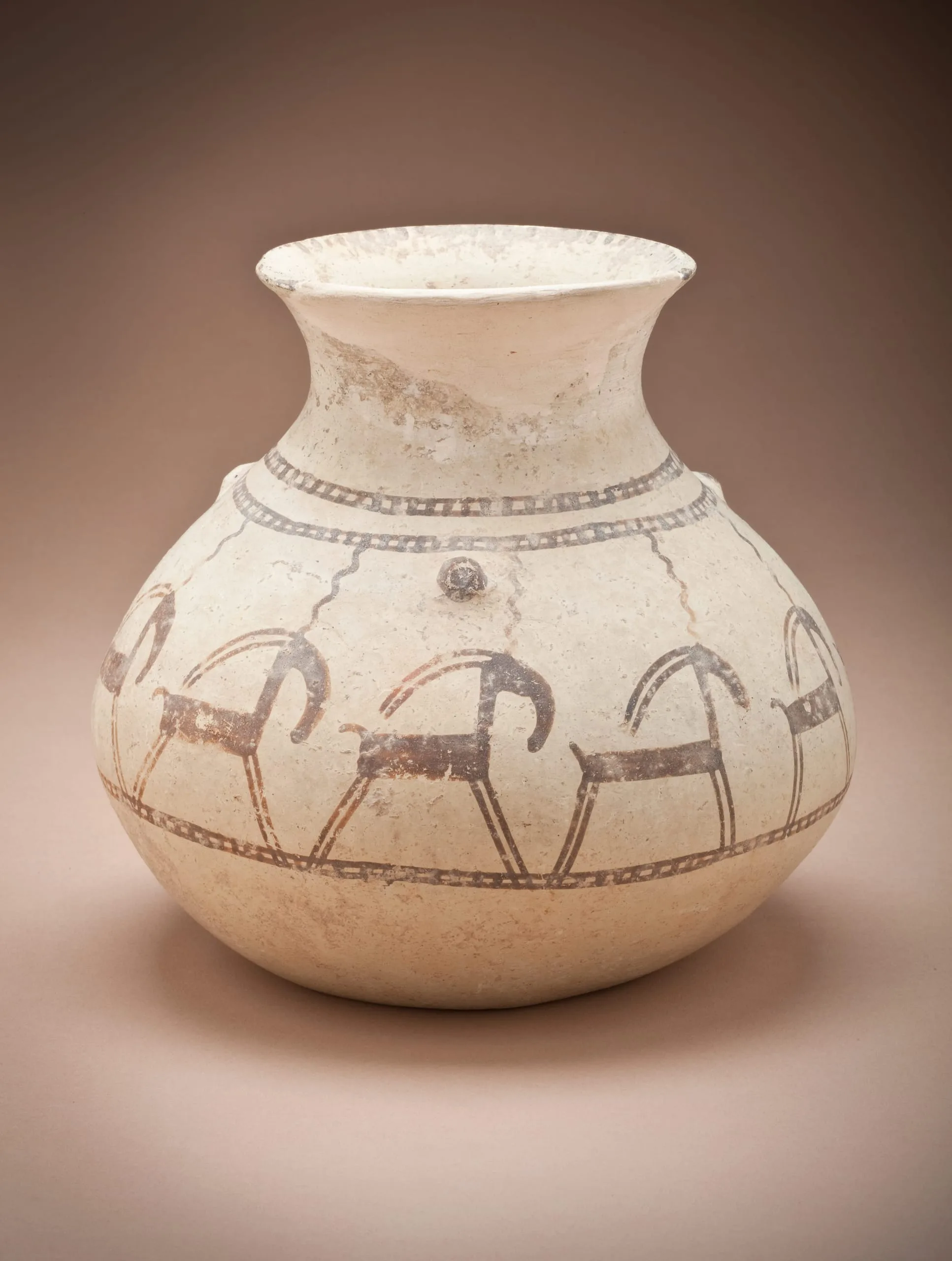 - Buff ware, cream slip, reddish-orange painted decoration