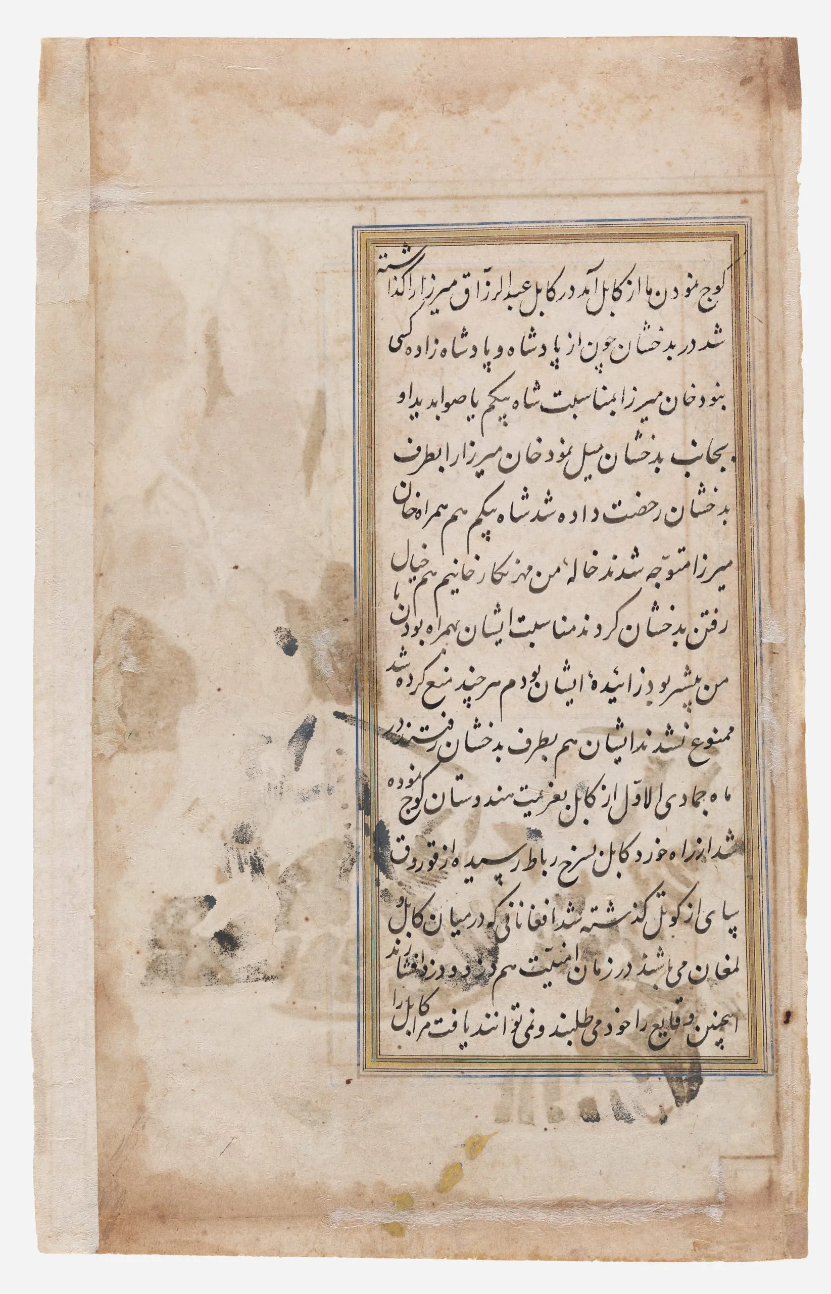 - Babur Marches from Kabul to Hindustan in 1507 (recto); Text (verso); Folio from a Baburnama (Memoirs of Babur)