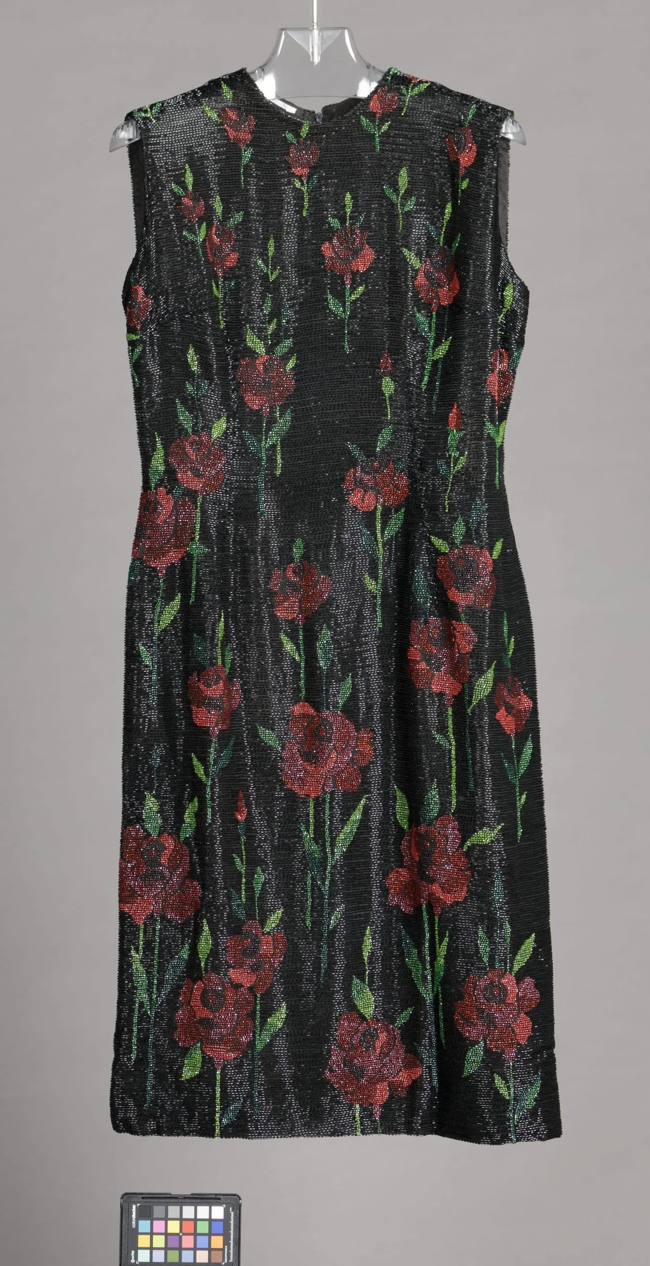 - Silk plain weave (organza) and glass beads