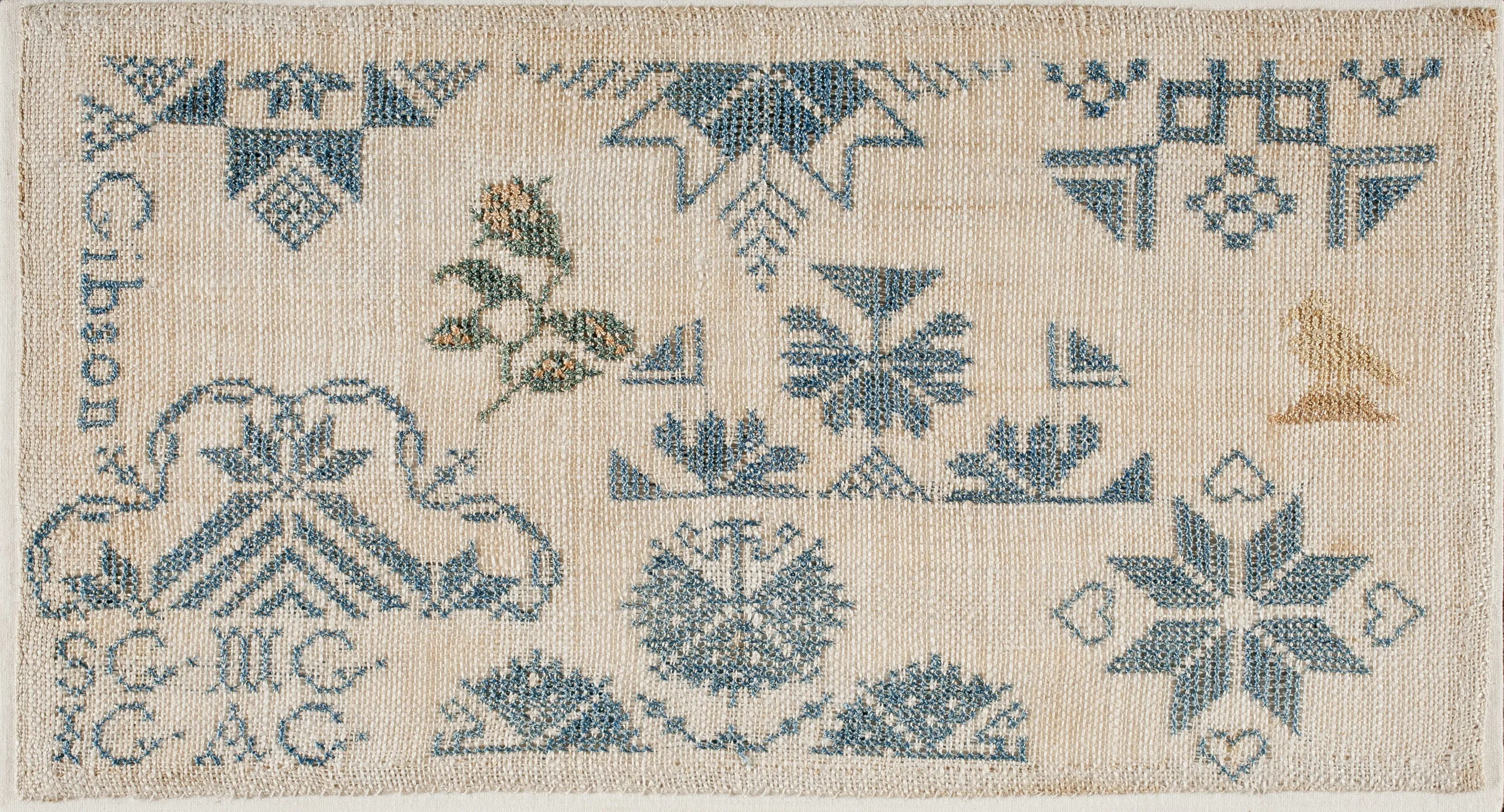 - Linen plain weave with silk embroidery