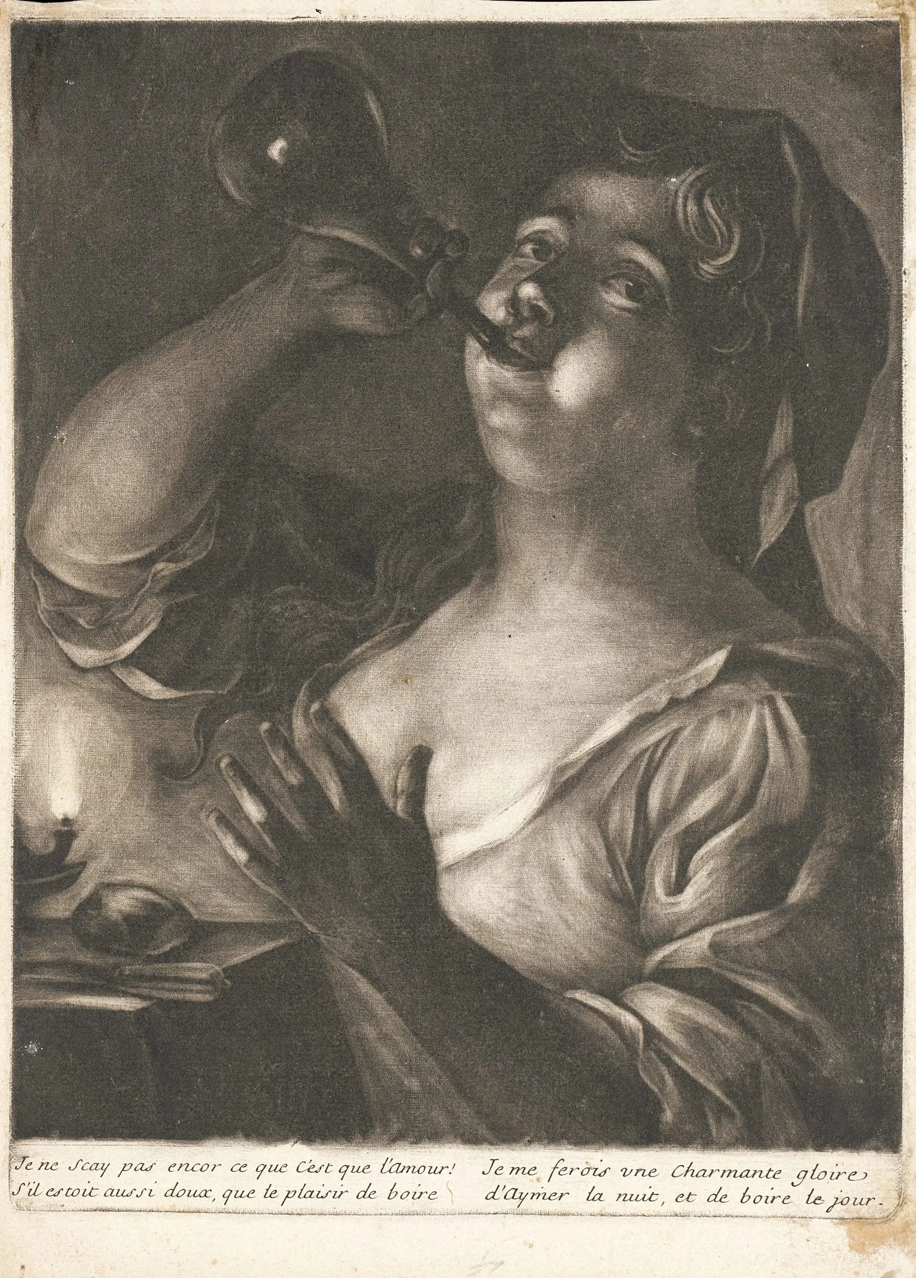 Girl Drinking from a Flask by Candlelight