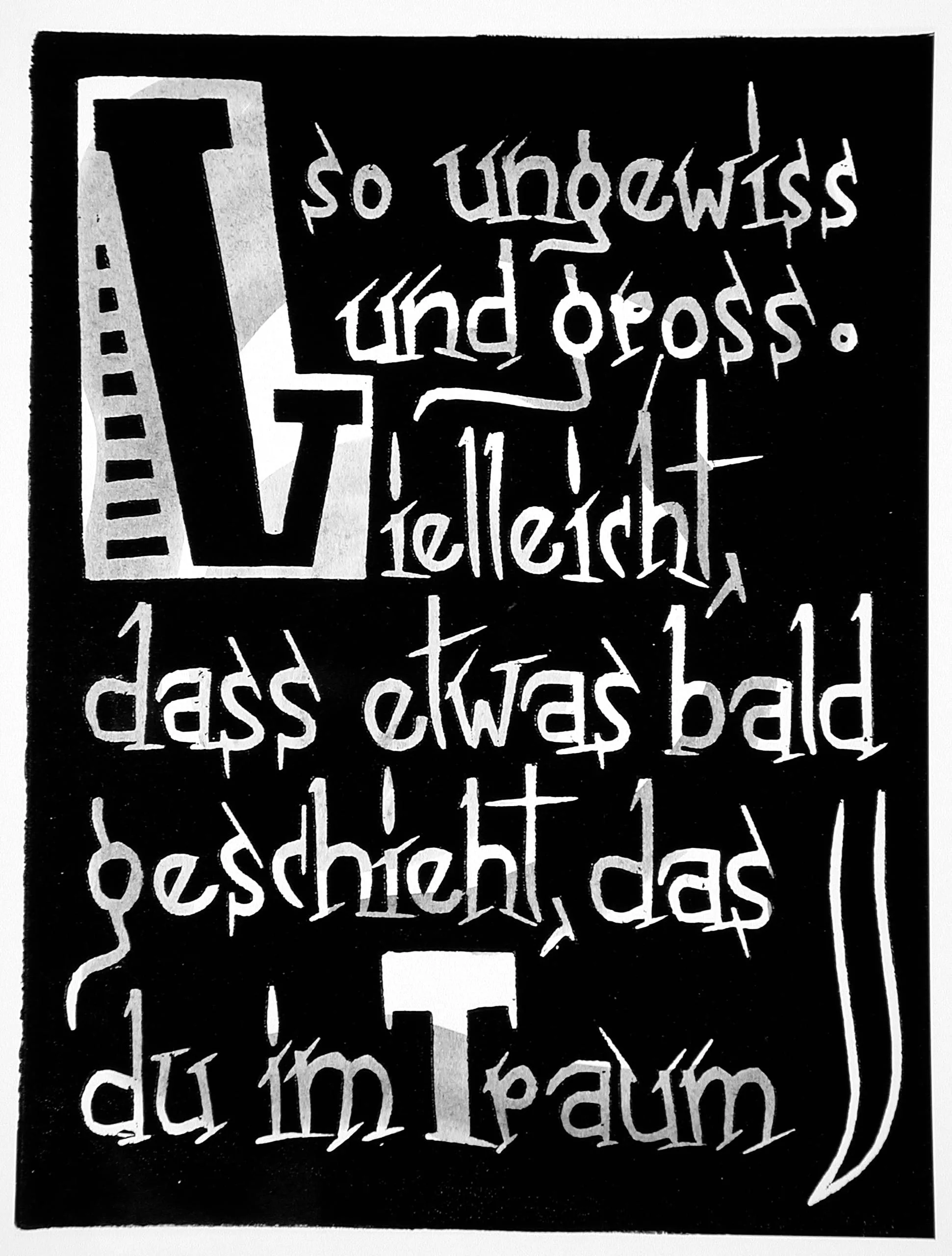 - Woodcut, handcolored with brown, gold and purple watercolor on Japan paper