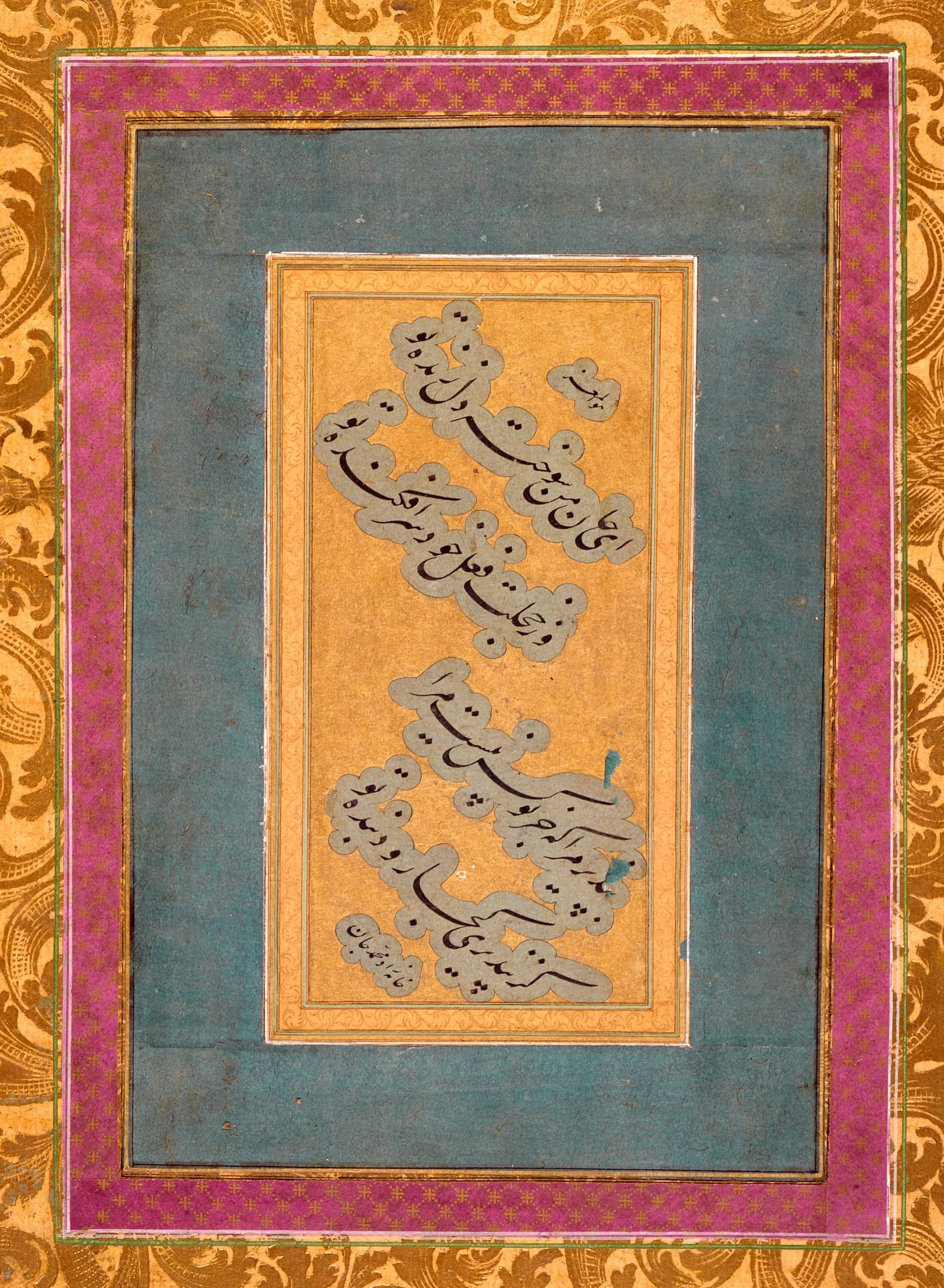 - Sultan Muhammad Adil Shah of Bijapur (r. 1627-1656) and his African Prime Minister Ikhlas Khan (d. 1656) (recto); Calligraphy (verso)