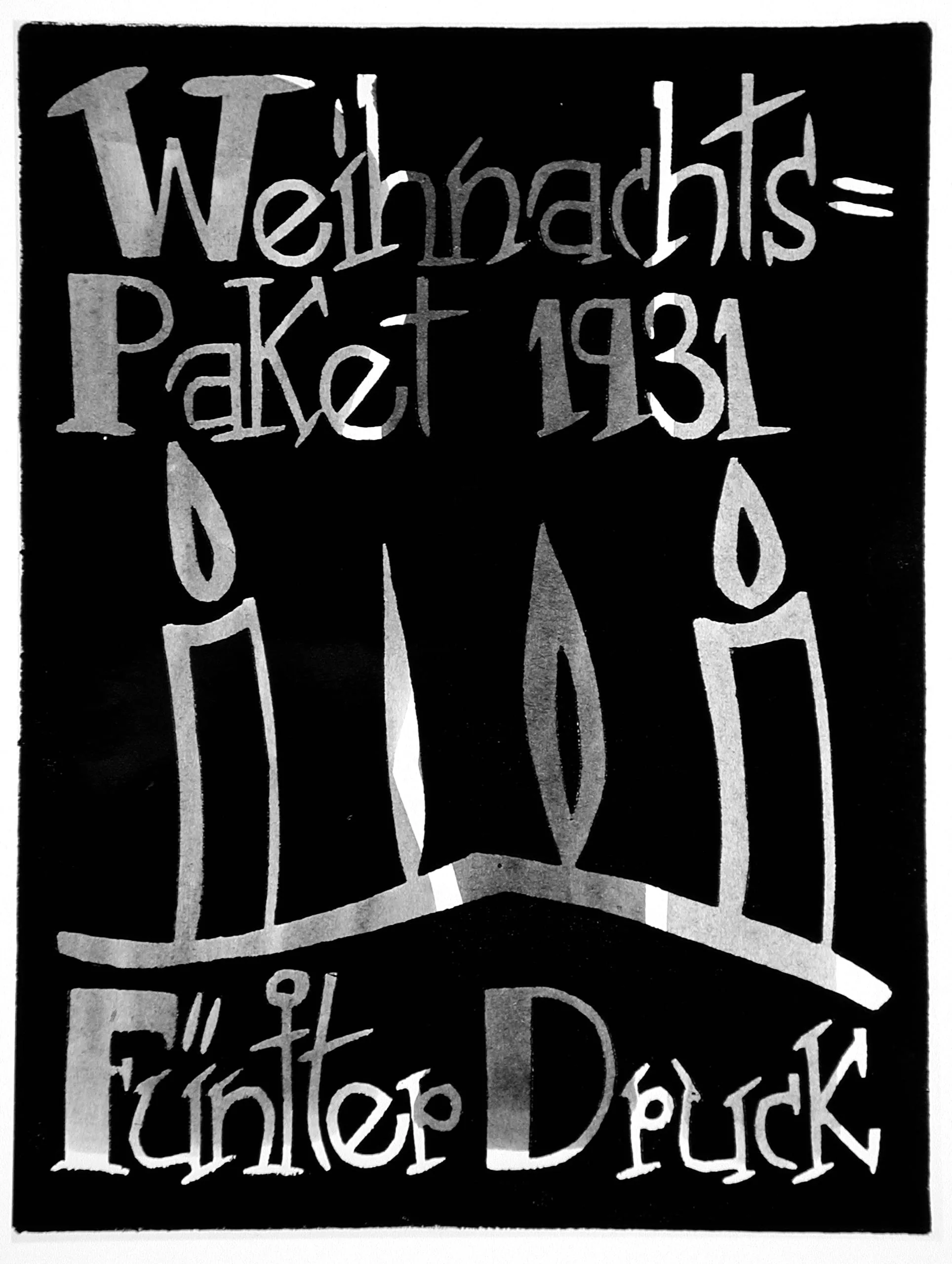 - Woodcut, handcolored with brown, purple and aqua watercolor on Japan paper