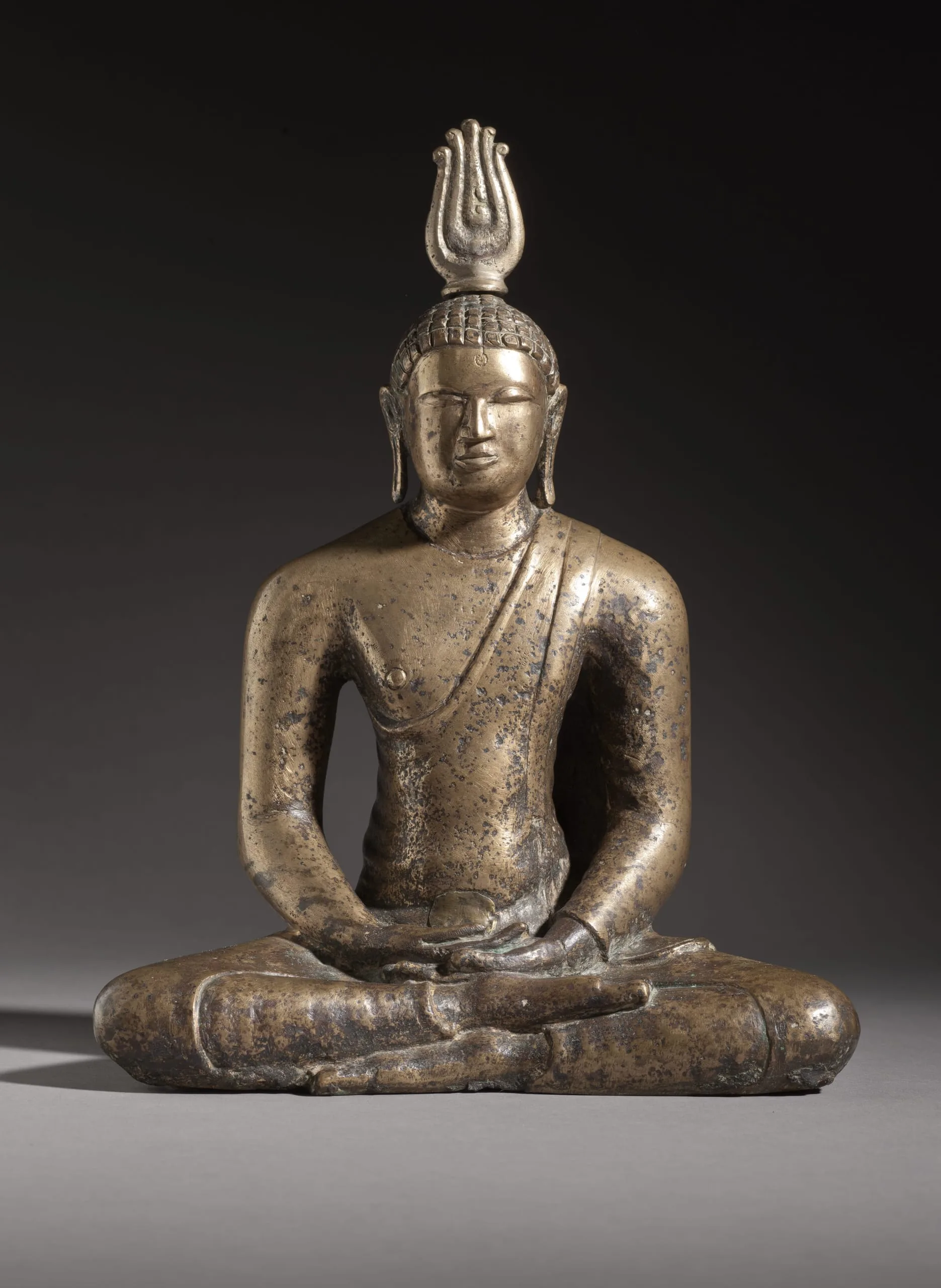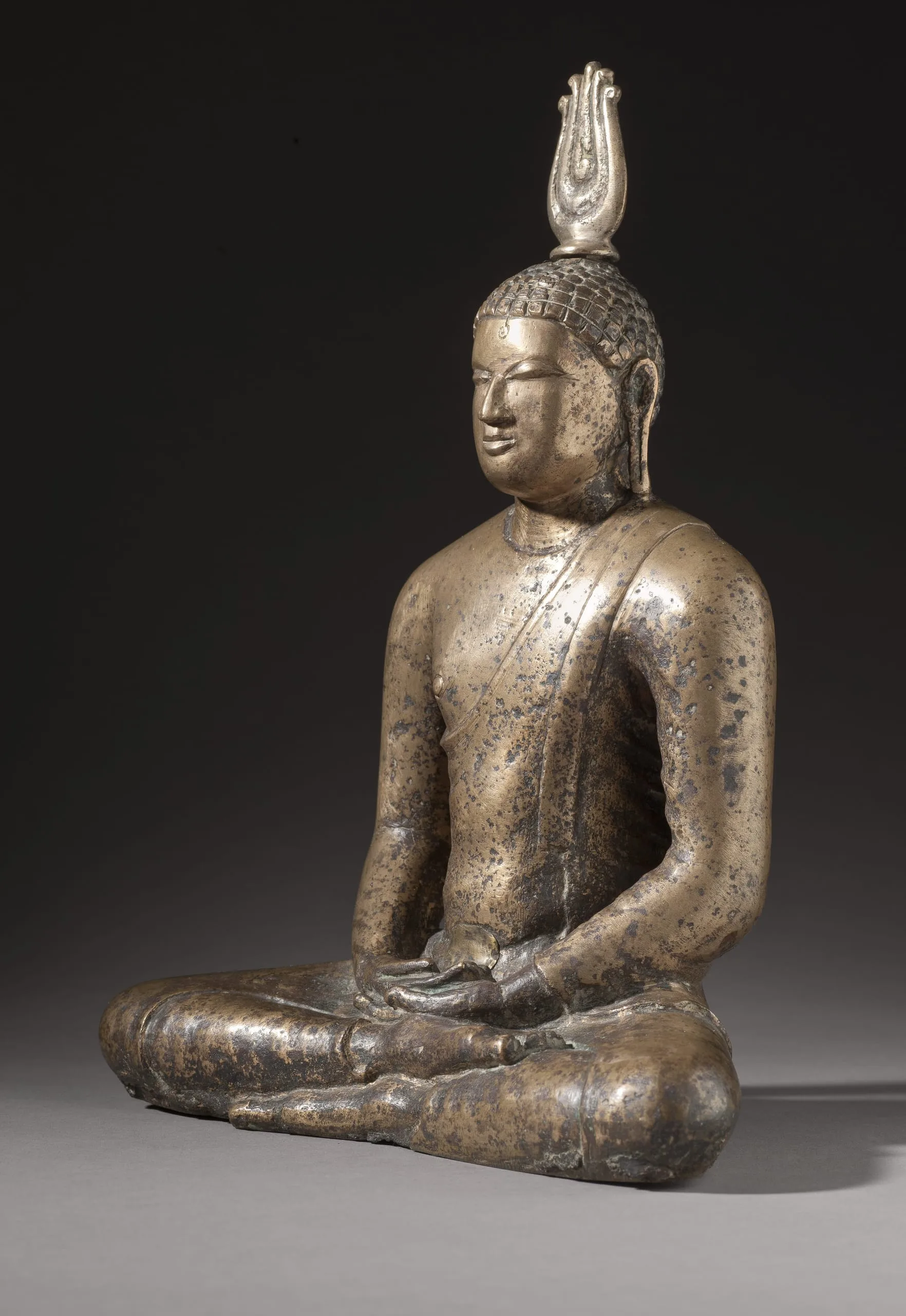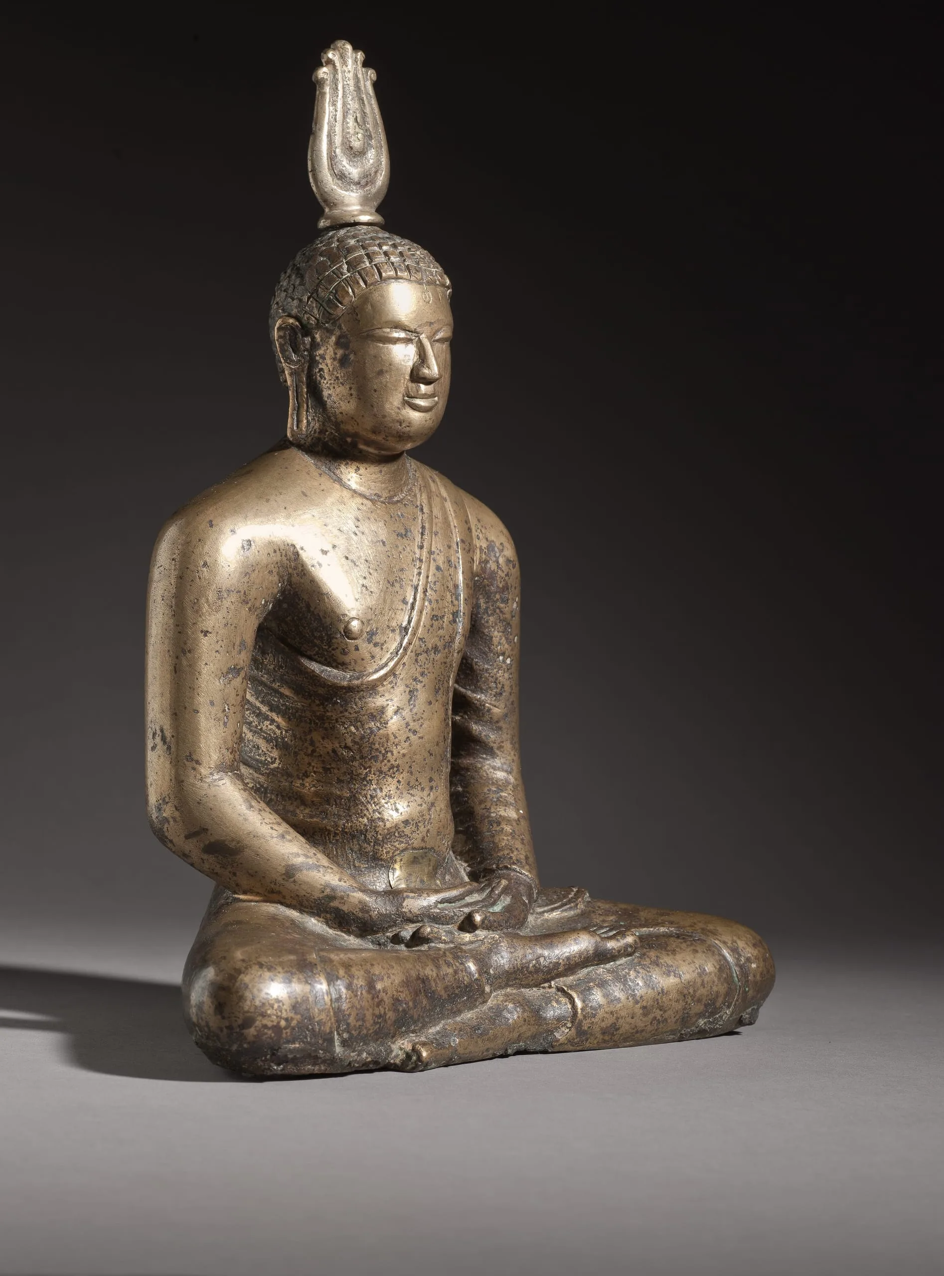 This representation of Buddha Shakyamuni epitomizes early Sri Lanka Buddha images made in the refined style associated with the Anuradhapura Kingdom (437 BCE-1017 CE) located in the north central province of modern Sri Lanka. Inspired by southern Indian Buddha images imported into Sri Lanka, stone Buddha images were made in Anuradhapura by the 4th century CE and bronze images by the 6th century CE.