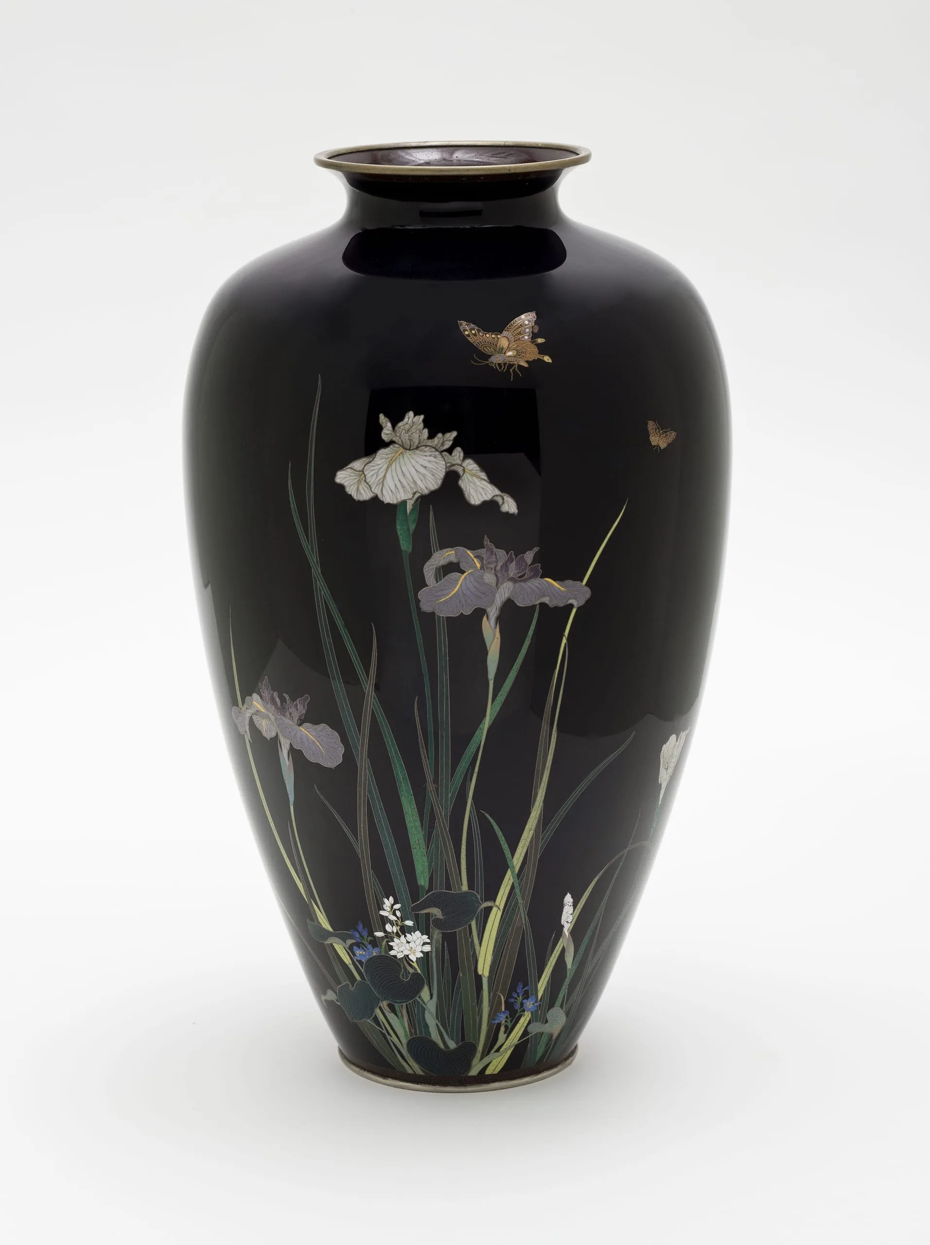 - One from a Pair of Vases with Designs of Irises and Butterflies