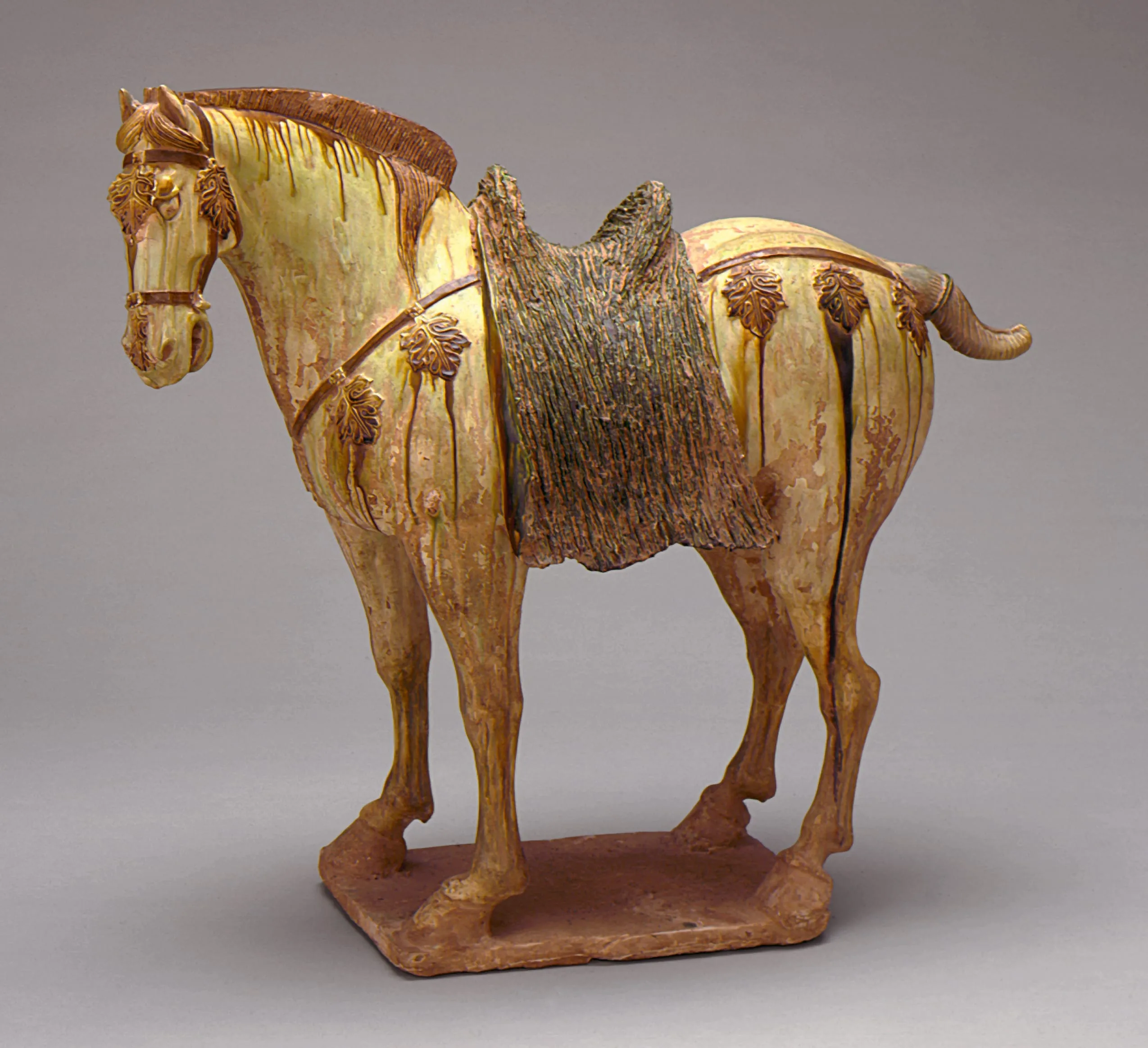 - Molded earthenware with molded, applied and incised decoration and polychrome (sancai) glaze