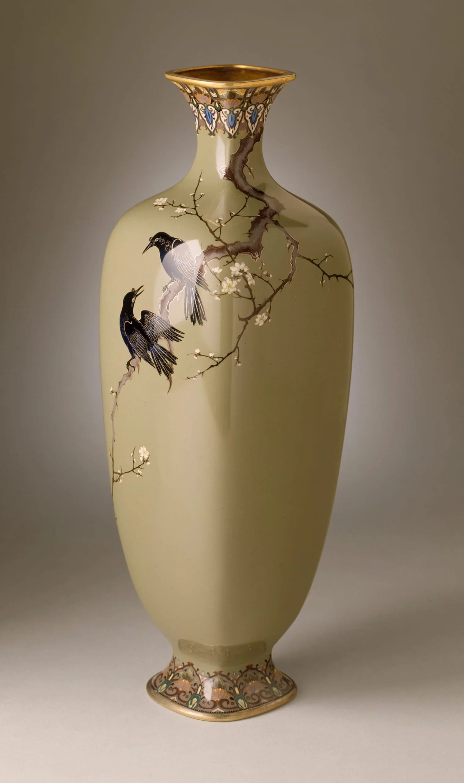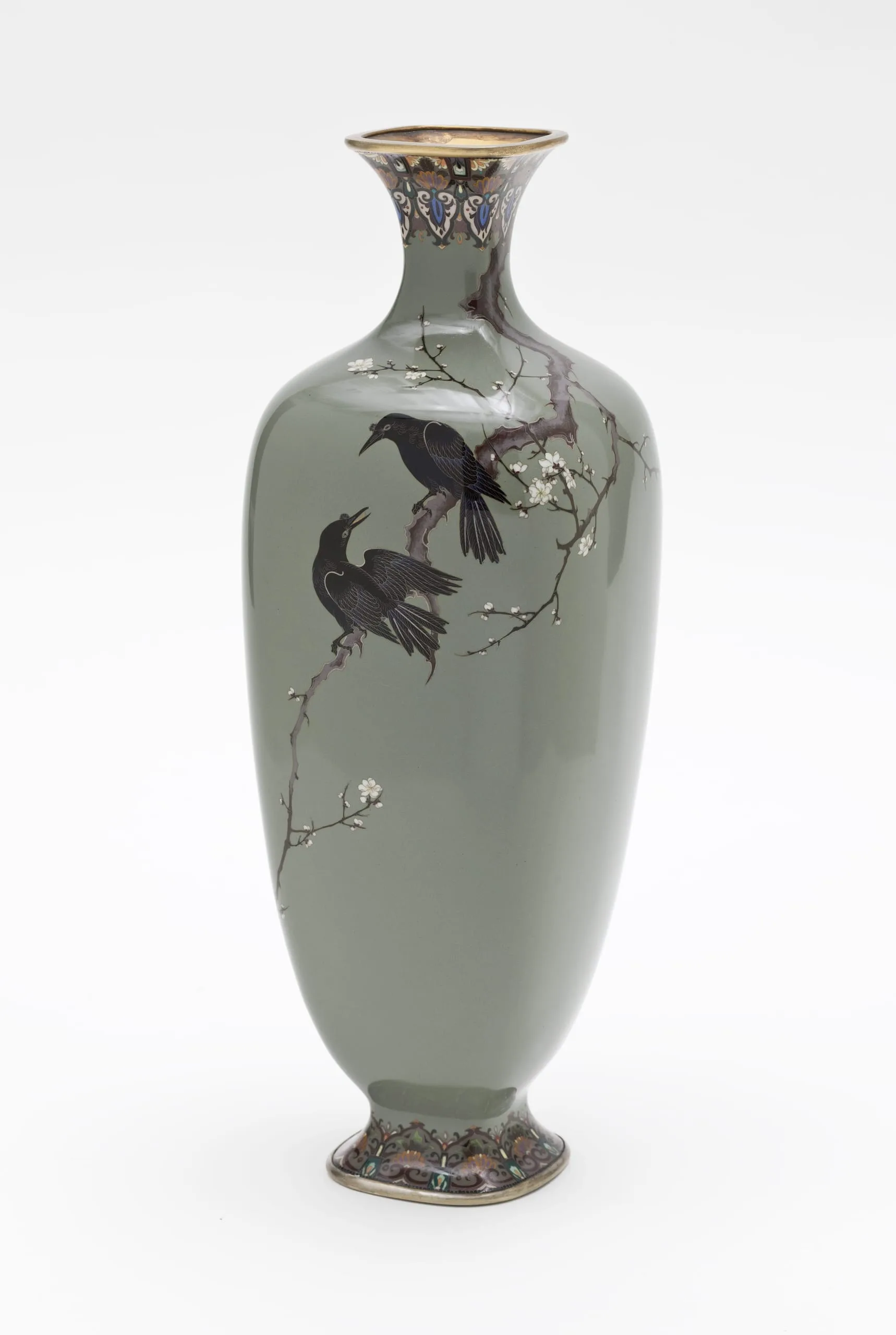 - One from a Pair of Vases with Designs of Crows on Branches