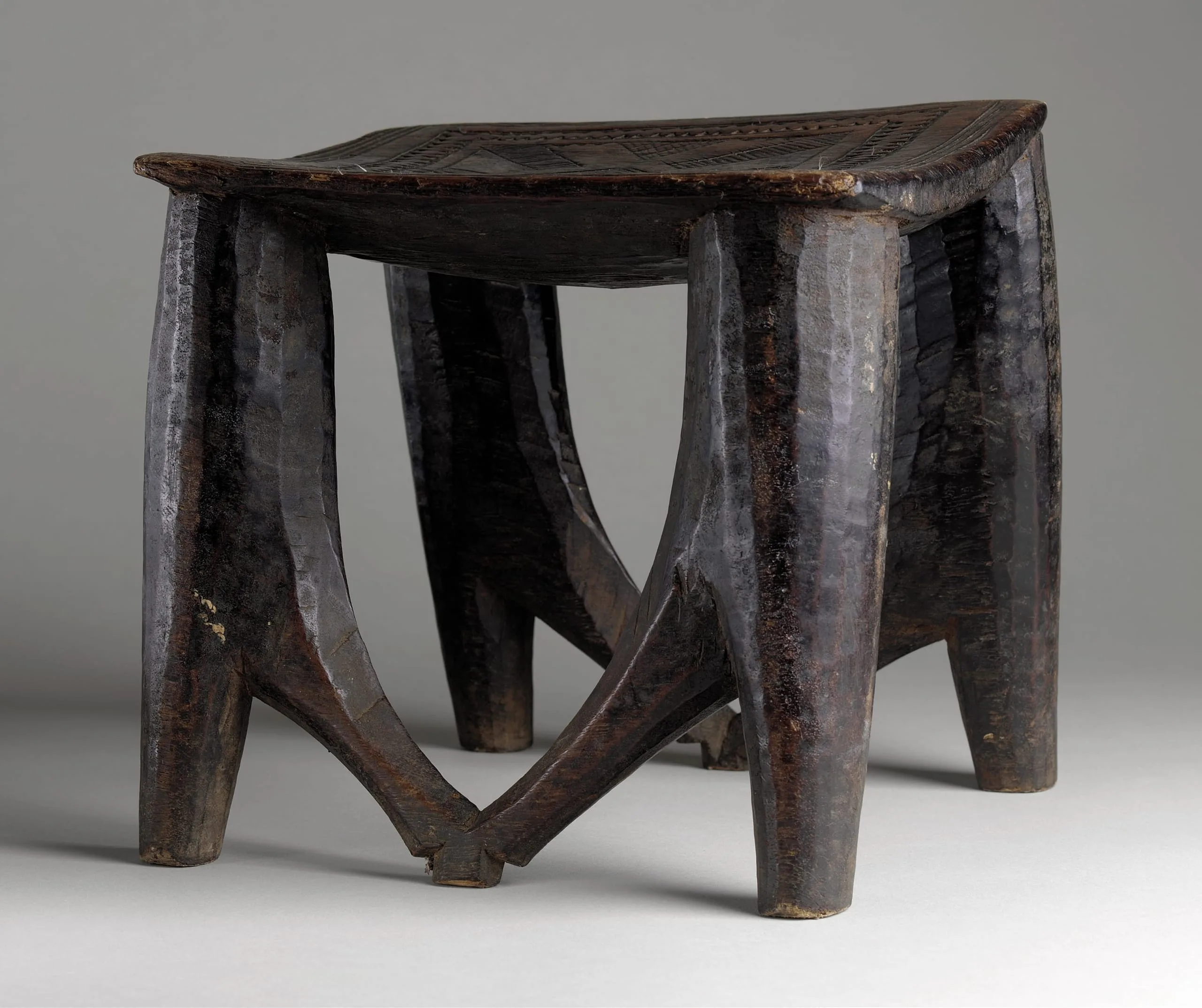 Square Stool with Incised Carvings