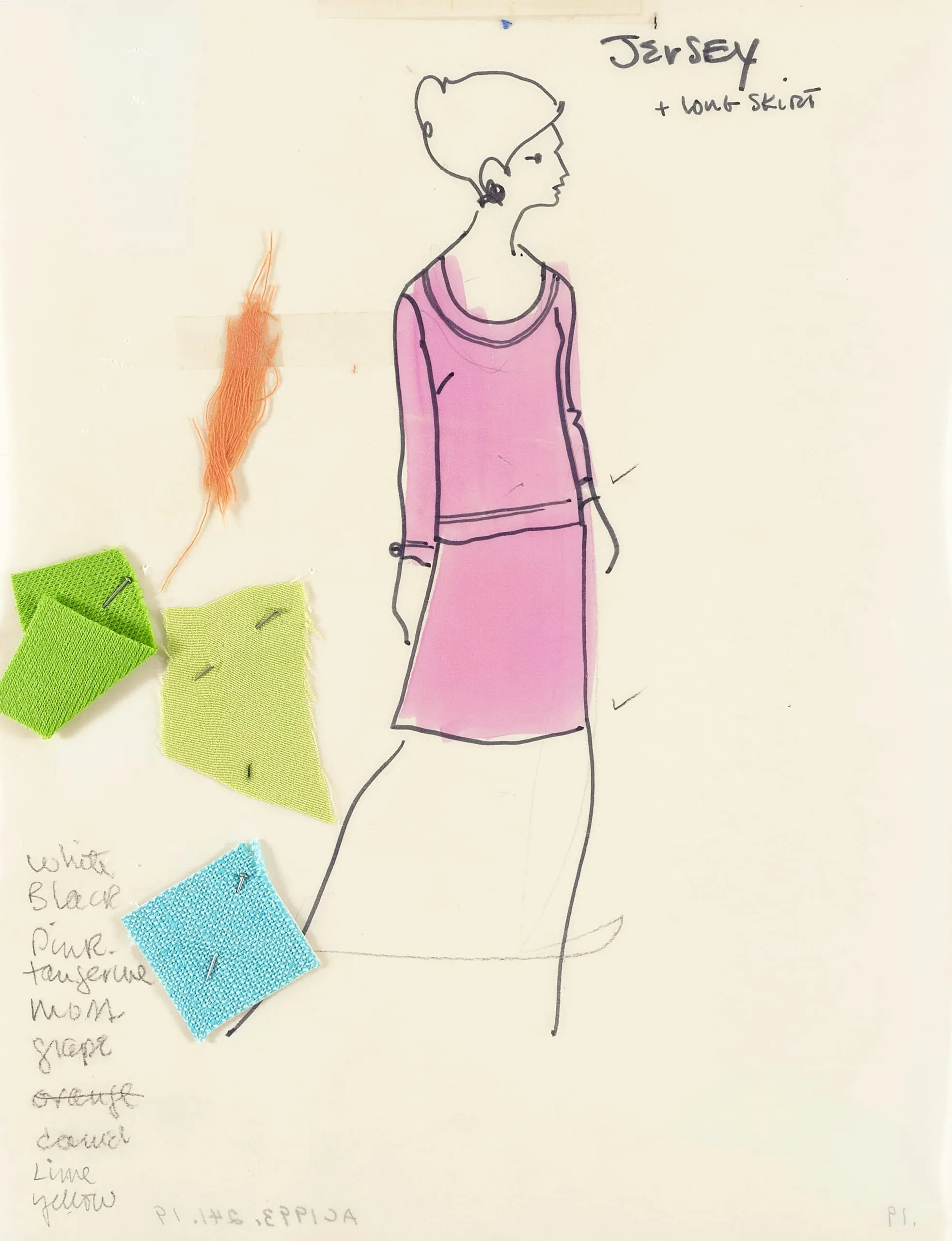 - Ink on vellum with fabric swatches