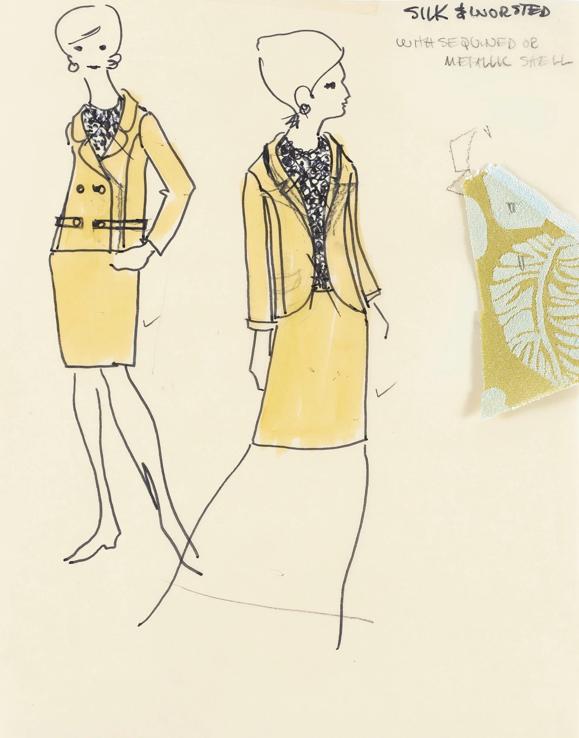 - Ink on vellum with fabric swatch