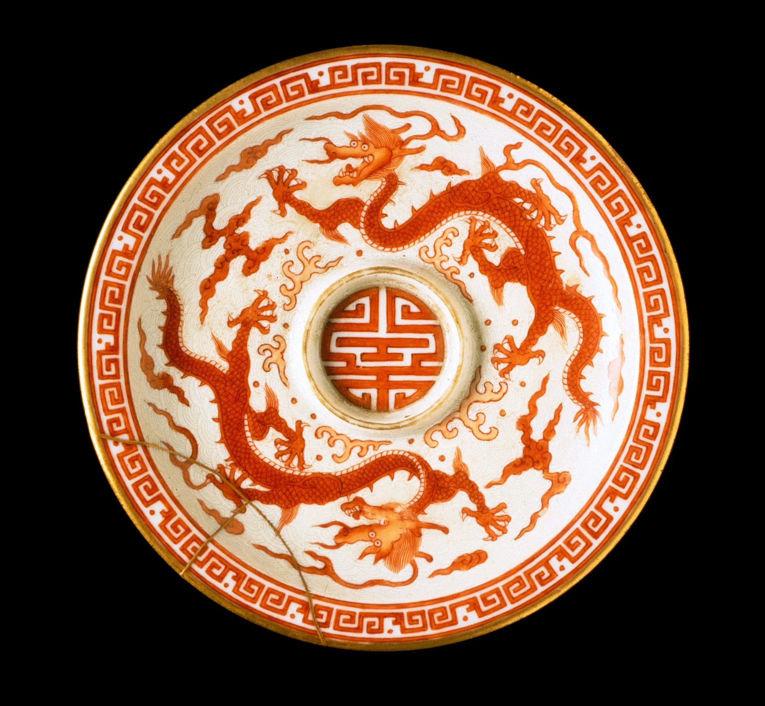 - Cup Stand (Tuozhan) with Longevity (Shou) Character and Dragons among Waves