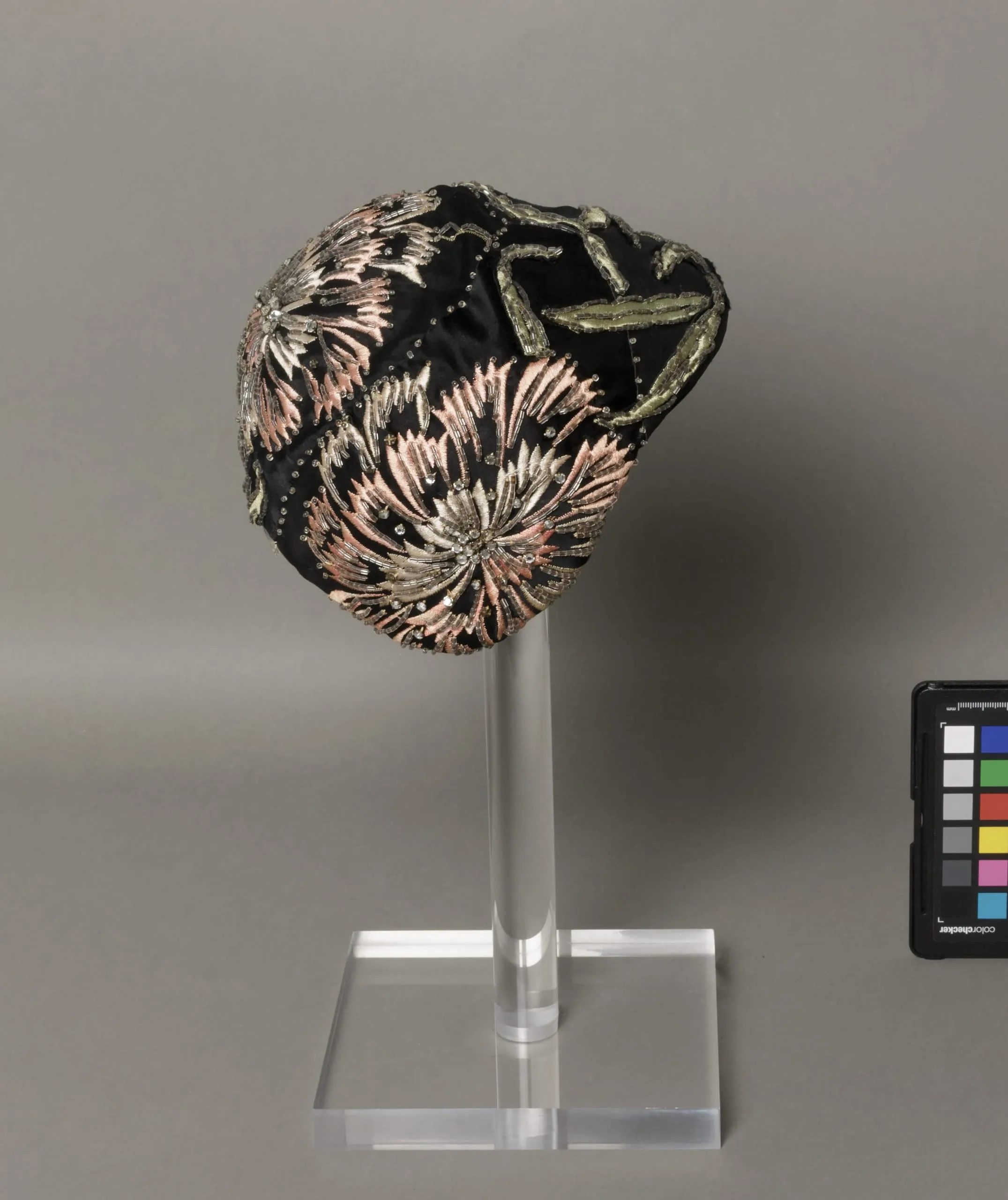 - Satin, silk thread embroidery, glass beads, rhinestones