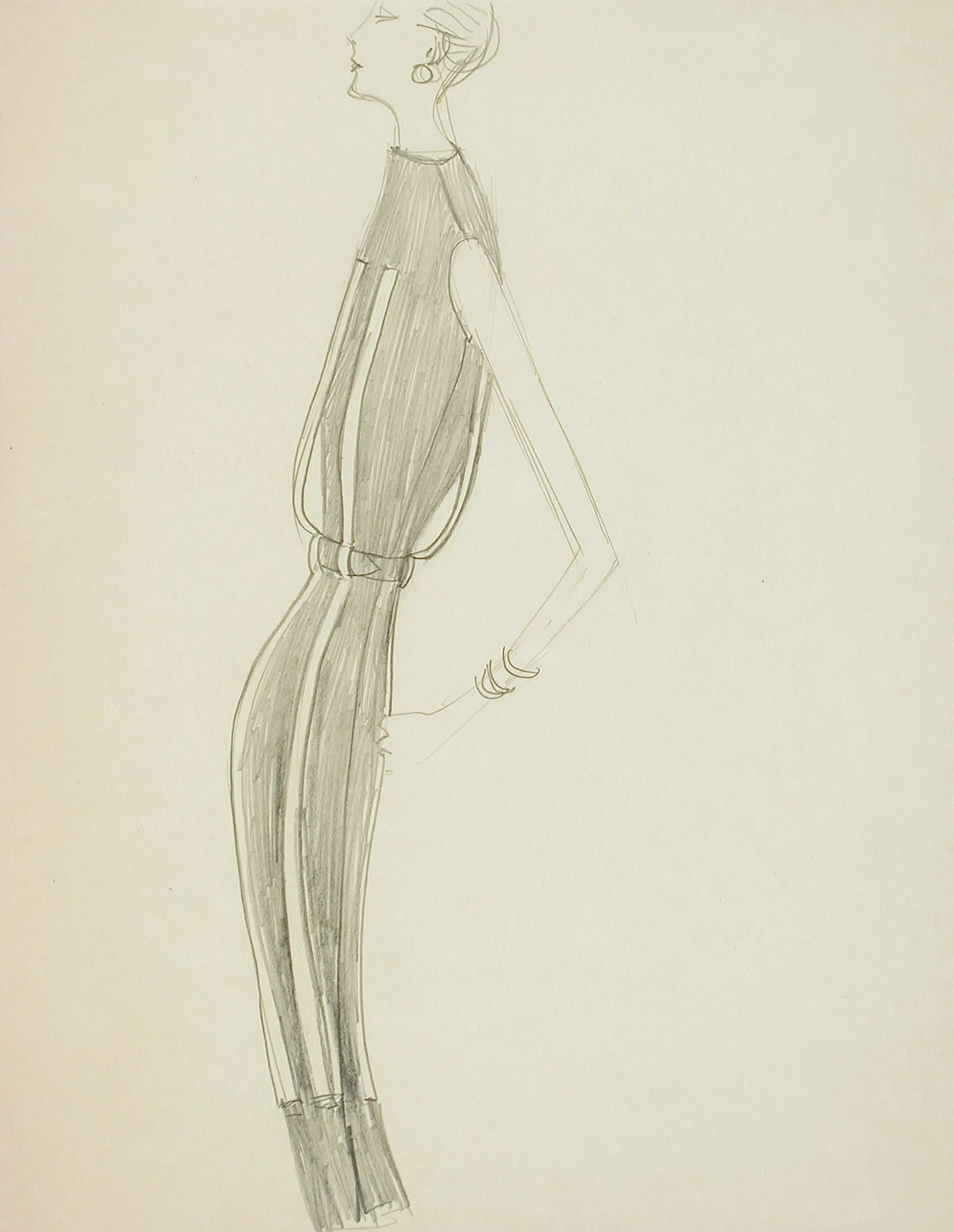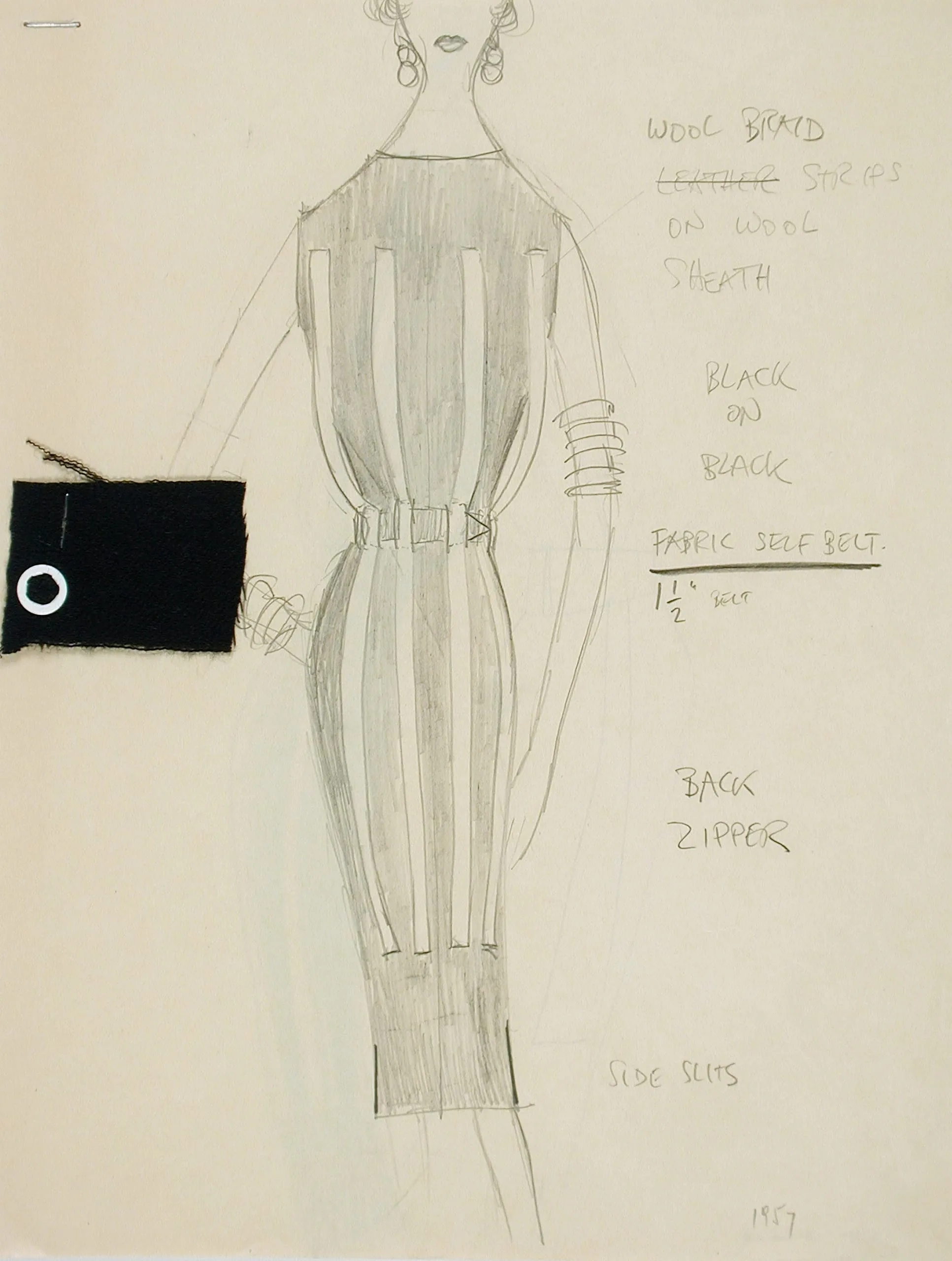 - Pencil on paper with woven wool-blend fabric swatch attached