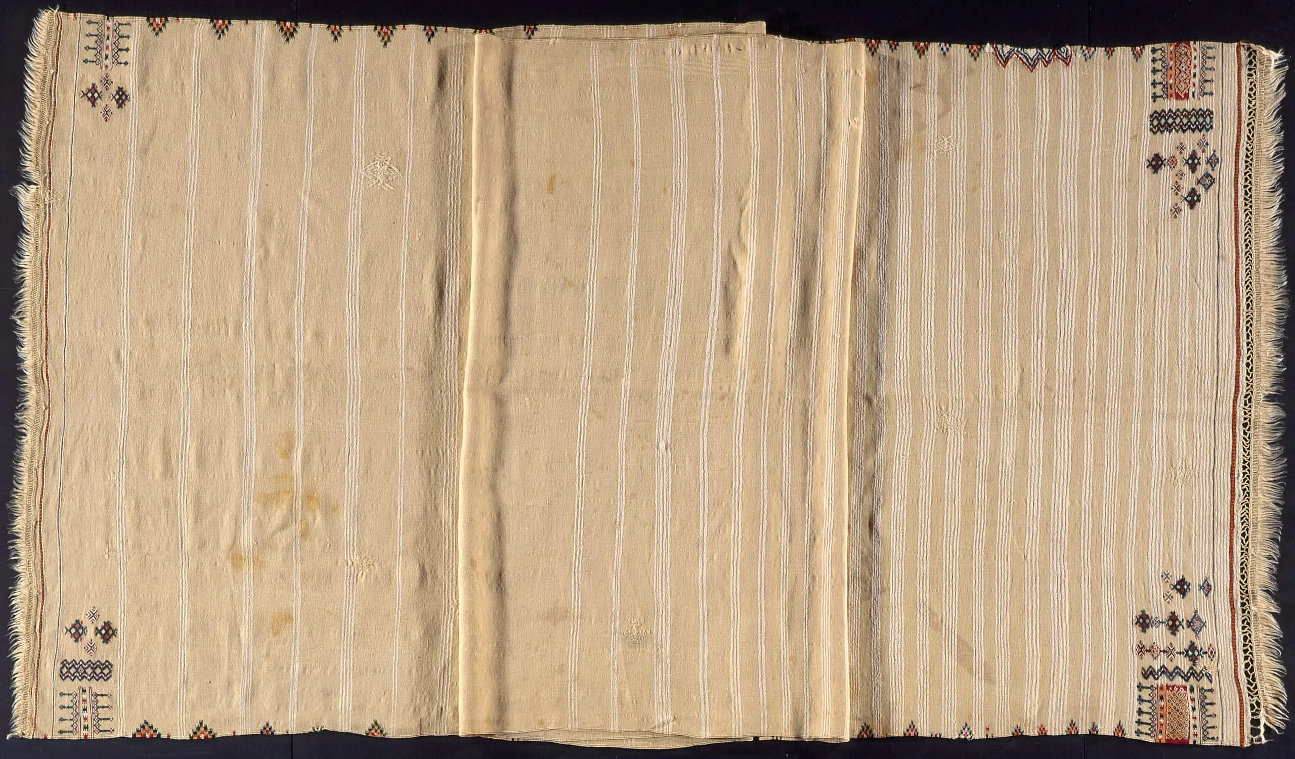 - Wool, cotton, silk; weft-faced plain weave, tapestry-weave, embroidery, supplementary weft