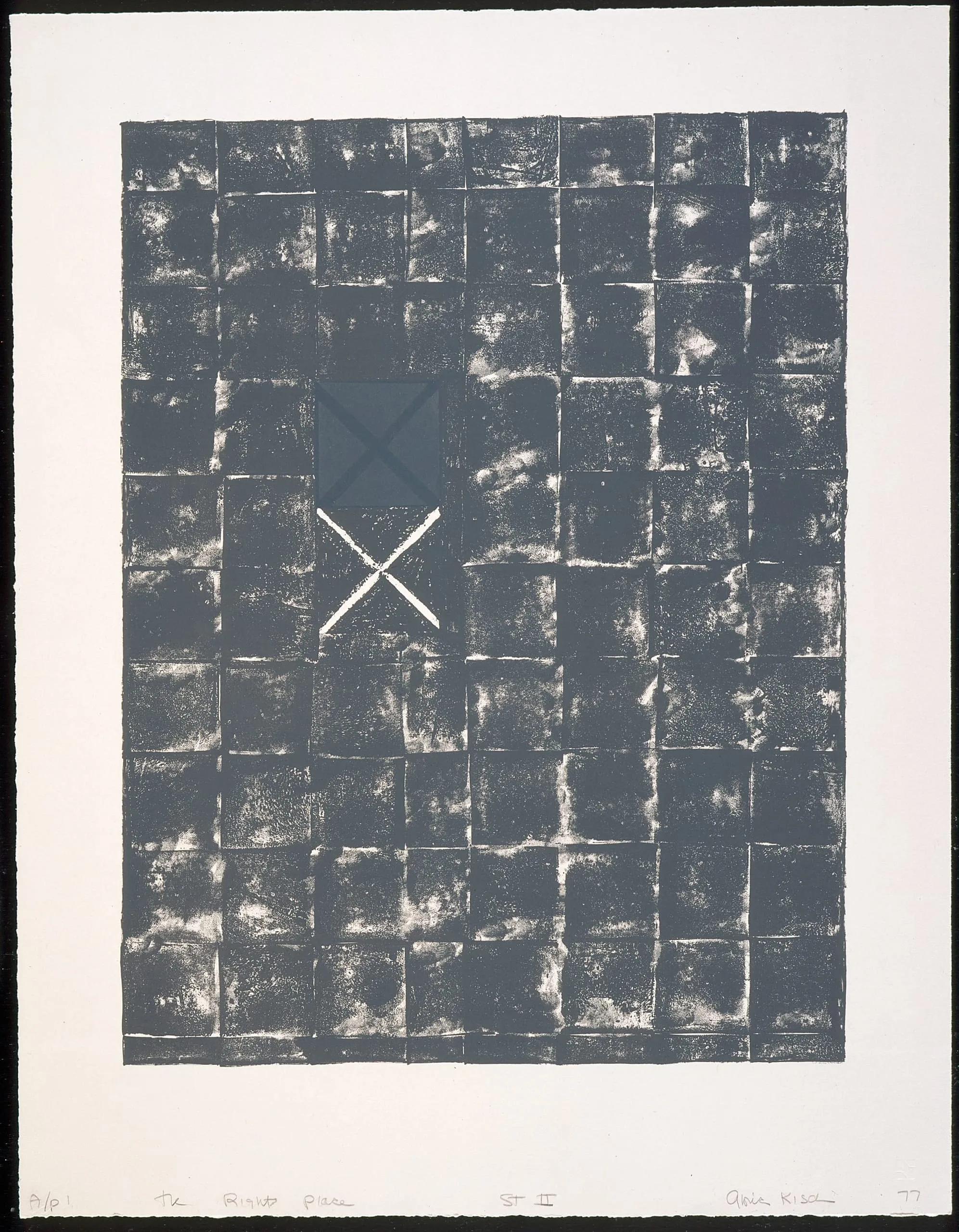 - Two-color lithograph and pochoir on Rives Newsprint Gray paper
