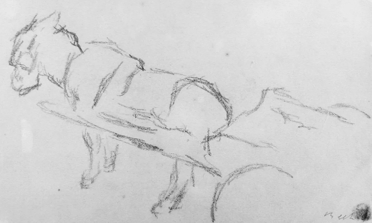 - Pencil on brownish paper