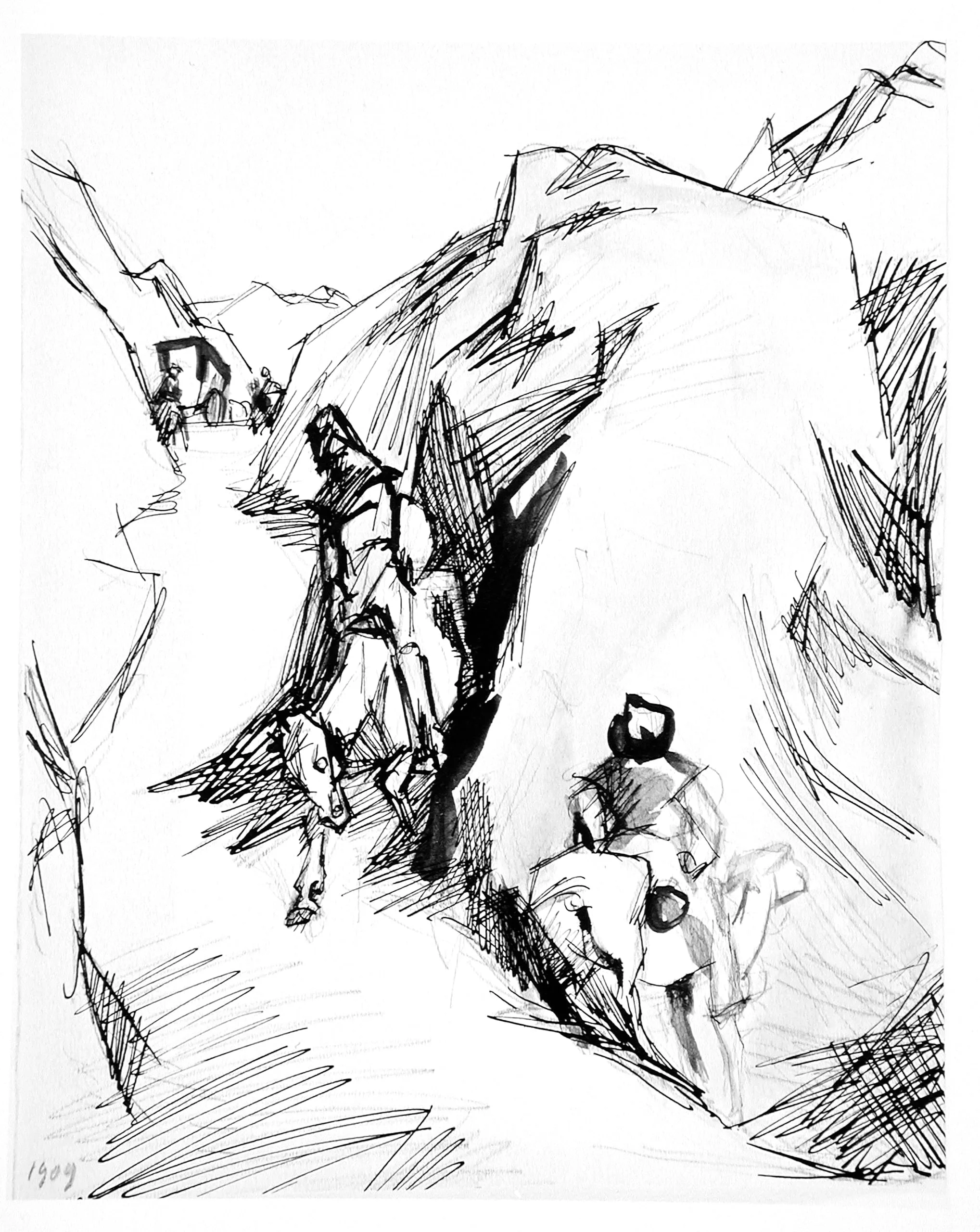 - Black ink, pencil and gray wash on wove paper, laid down