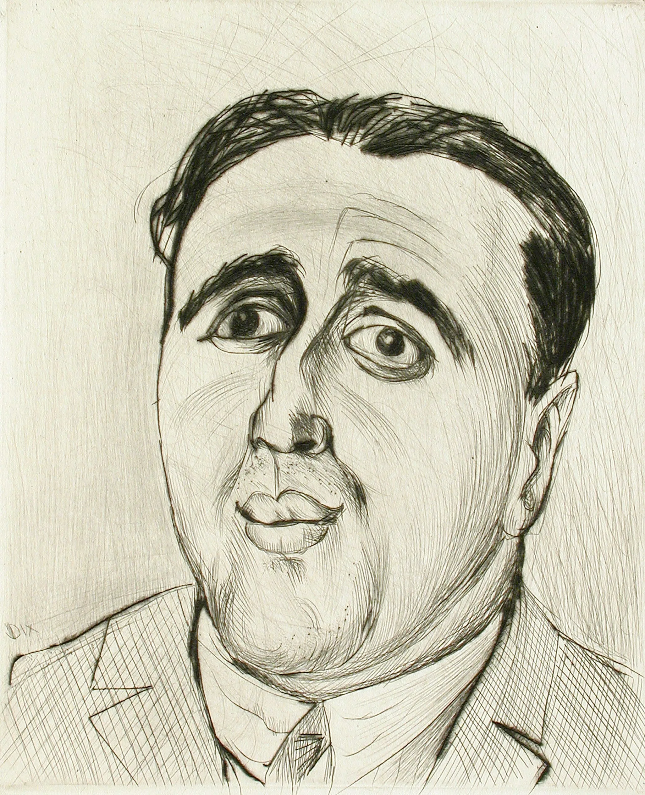 The art dealer J. B. Neumann was an early and avid supporter of a number of Expressionist and Dada artists, exhibiting their works in his Berlin gallery and publishing their prints. Otto Dix’s portrait of the dealer is unidealized, but the depiction is not without affection or warmth. In 1923, Neumann moved to New York to promote German artists in America, leaving the management of Dix and other artists to his partner, Karl Nierendorf.