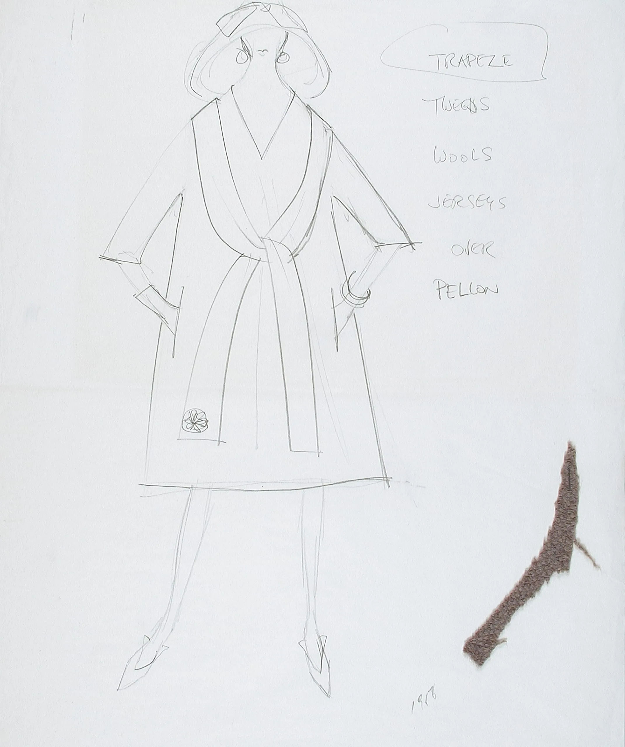 - a) Pencil on paper with jersey fabric swatch attached b) Pencil on paper with wool tweed attached