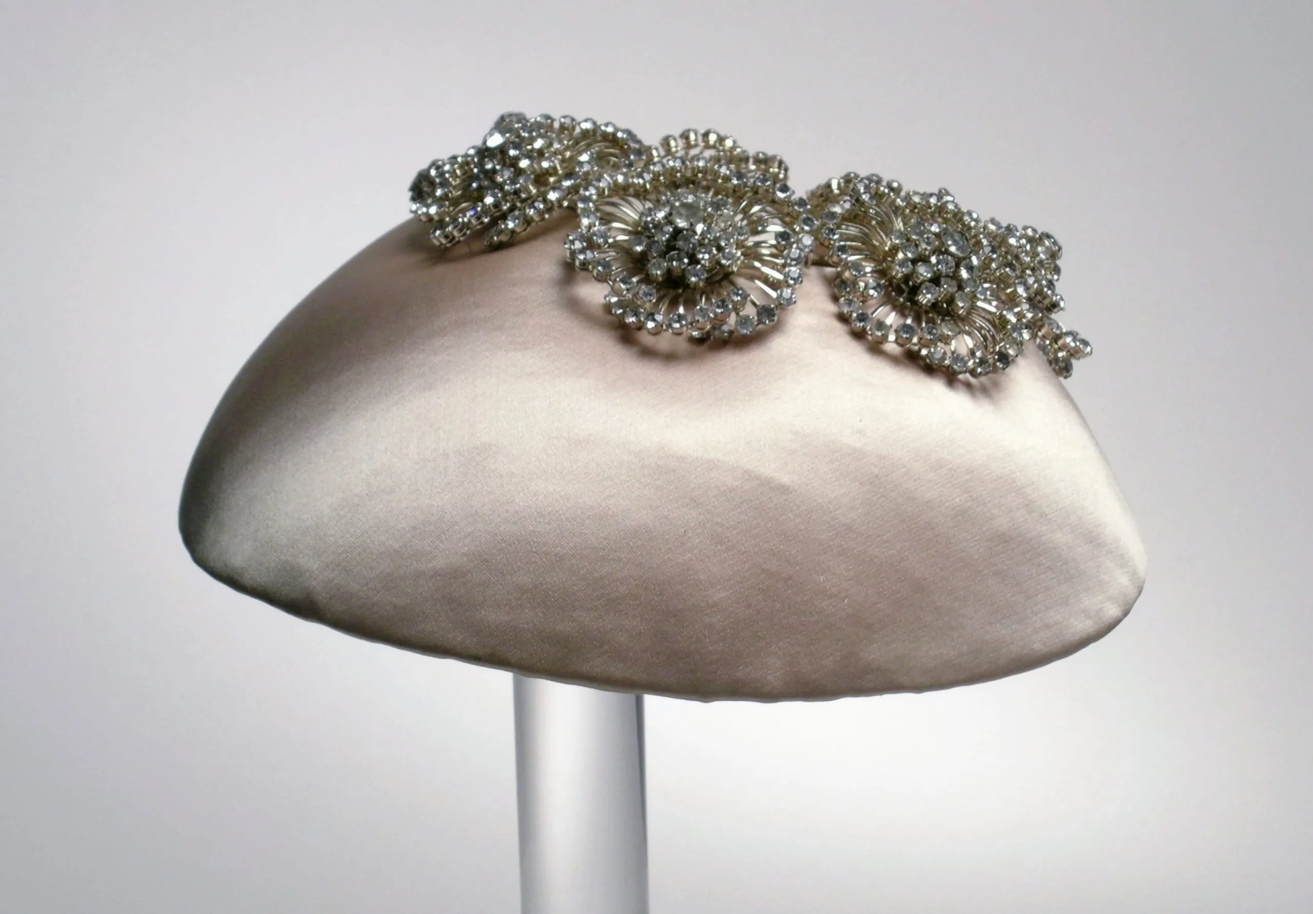 - Silk satin, rhinestones, metal