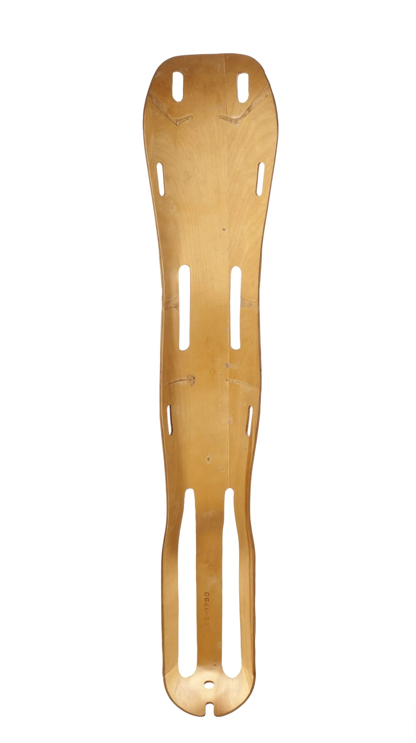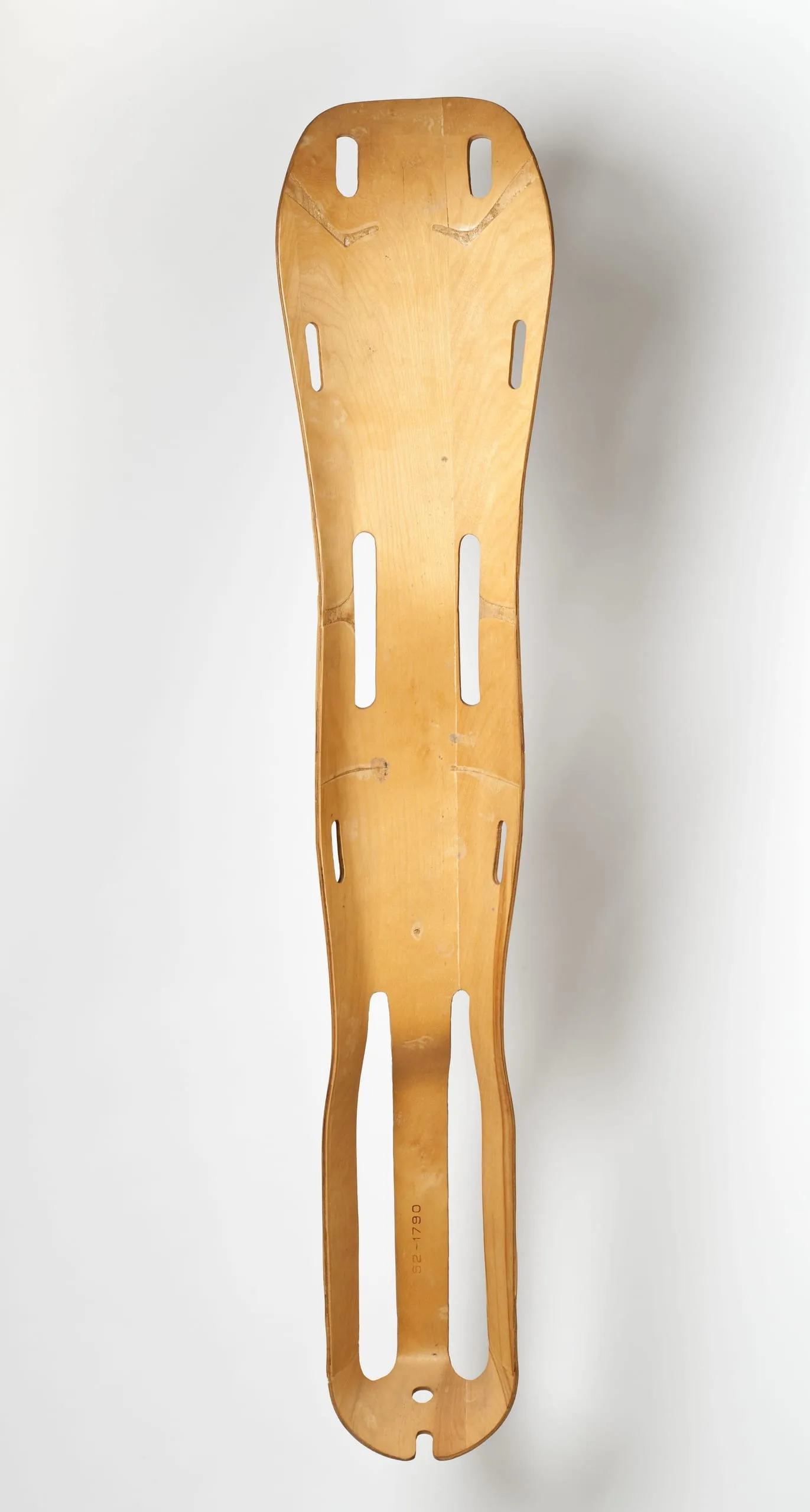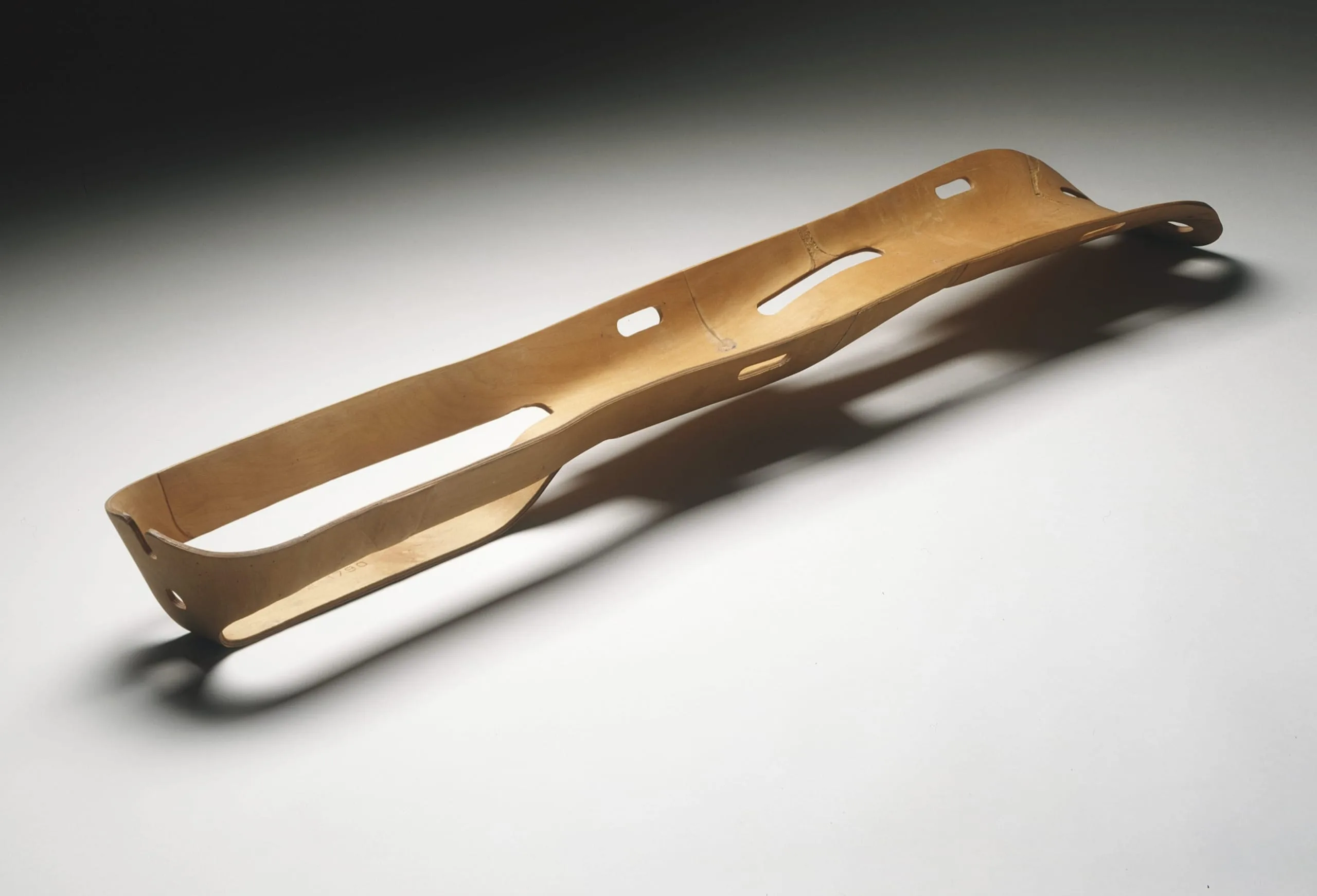 Charles and Ray Eames moved to Los Angeles in 1941 and continued to experiment with molded plywood. They proposed to the U.S. Navy that molded-plywood splints for wounded servicemen and women would be more lightweight and effective than the metal ones then in use. In 1942 they received a contract and began production, making this splint the first mass-produced molded-plywood product with compound curves.