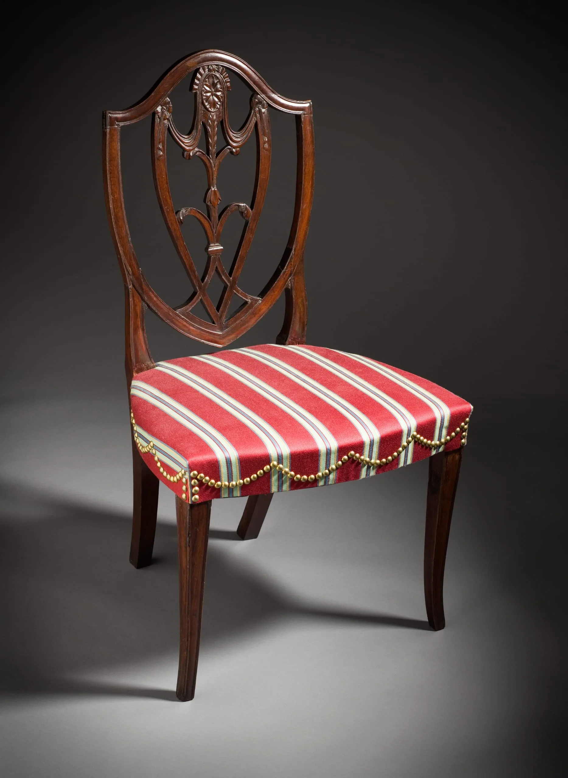 - Shield-back Side Chair with Drapery and Plume-Carved Splat